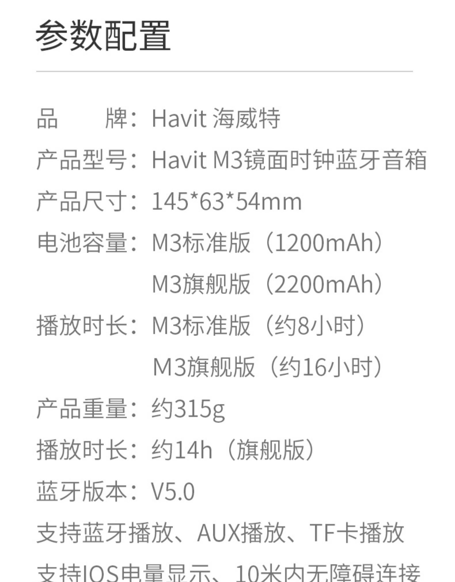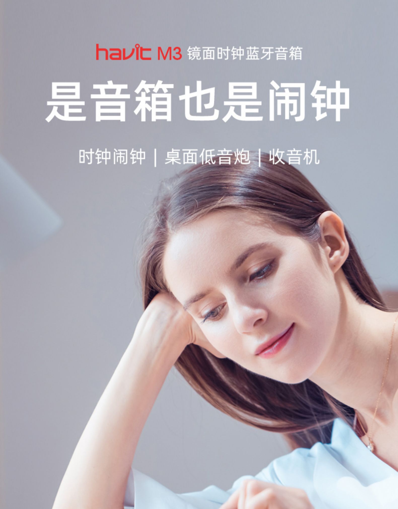 havit/海威特M3无线蓝牙音箱超重低音炮家用便携式迷你小闹钟音响车载户外随身电脑手机3d环绕大音量收音机篮