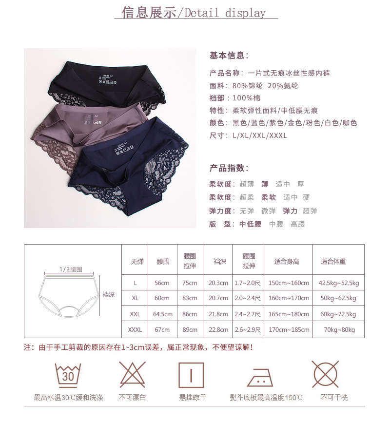 3条装|性感内裤女蕾丝中腰纯棉裆女士无痕冰丝大码三角内裤头火辣