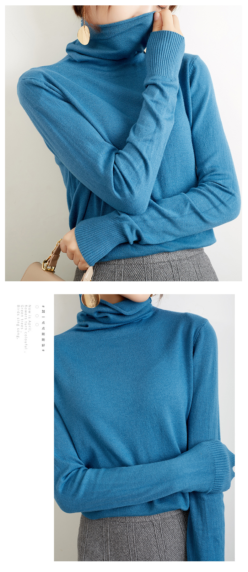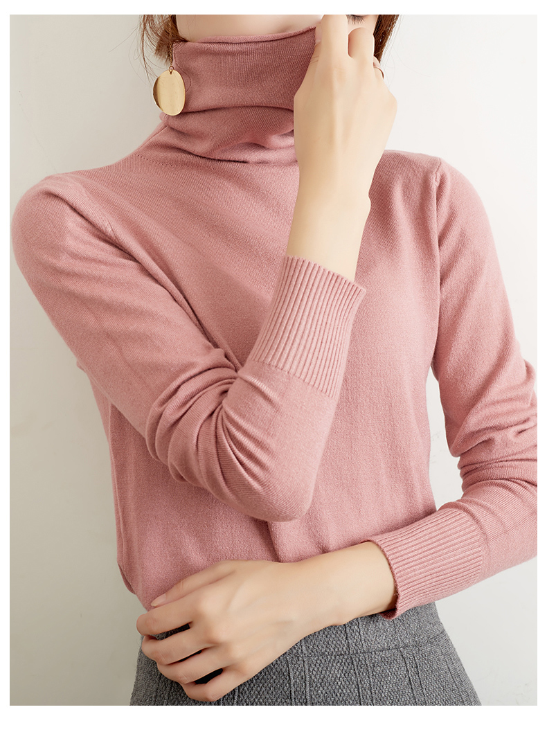 楠驹【2件69元】秋冬新款女上衣打底毛衣堆堆领纯色高领针织衫