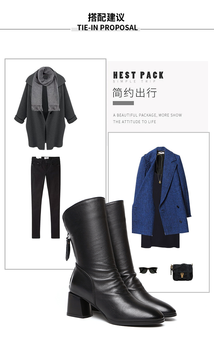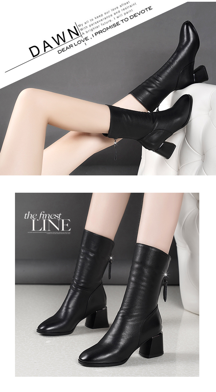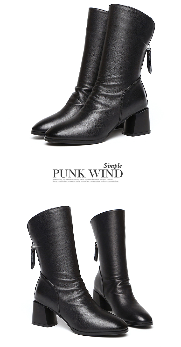 2019秋冬季网红瘦瘦靴高跟短靴女粗跟加绒雪地靴中跟中筒马丁靴女