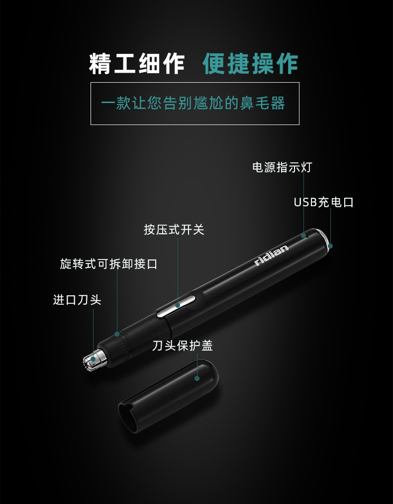 日电动鼻毛修剪器女男士,用刮修鼻毛清理鼻孔剃毛,充电式剪鼻毛神器,笔式设计方便携带USB接口充电5分钟快速充满