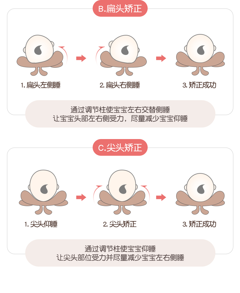 婴儿定型枕 宝宝防偏头透气四季枕头0-1岁新生儿纠正头型矫正神器