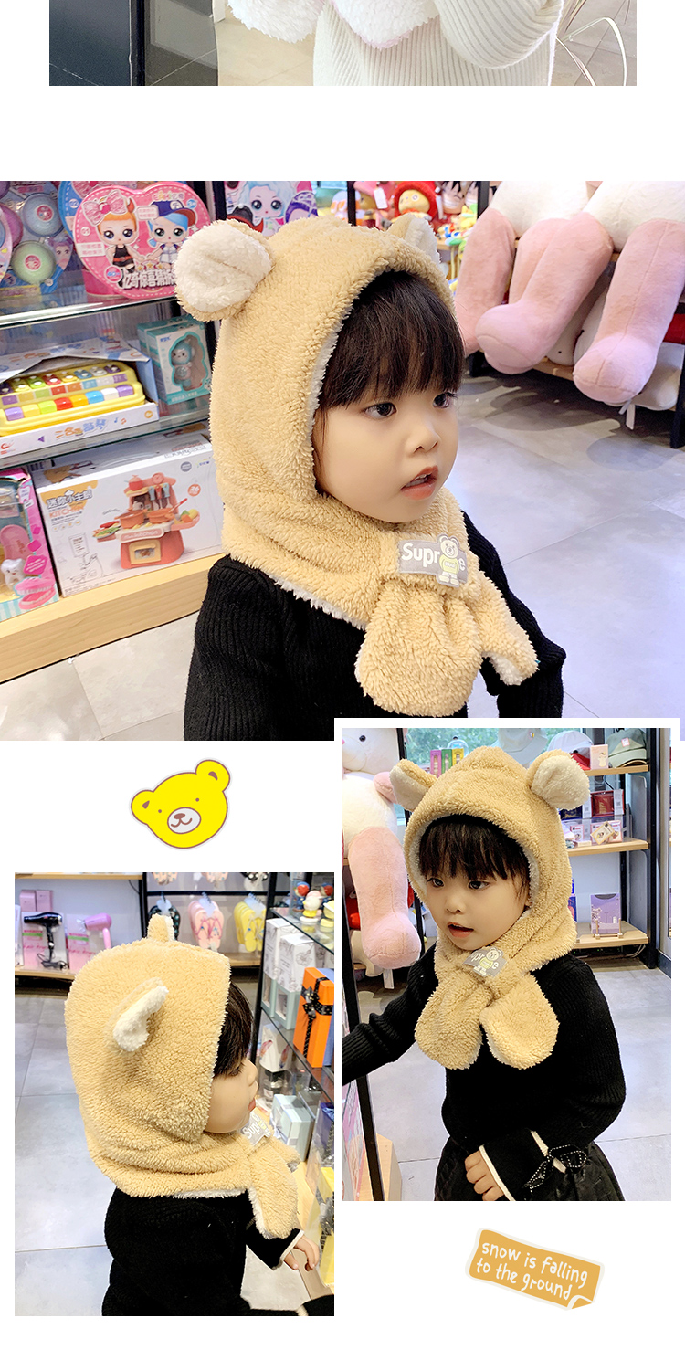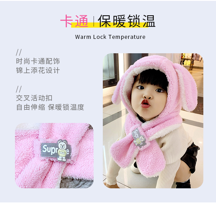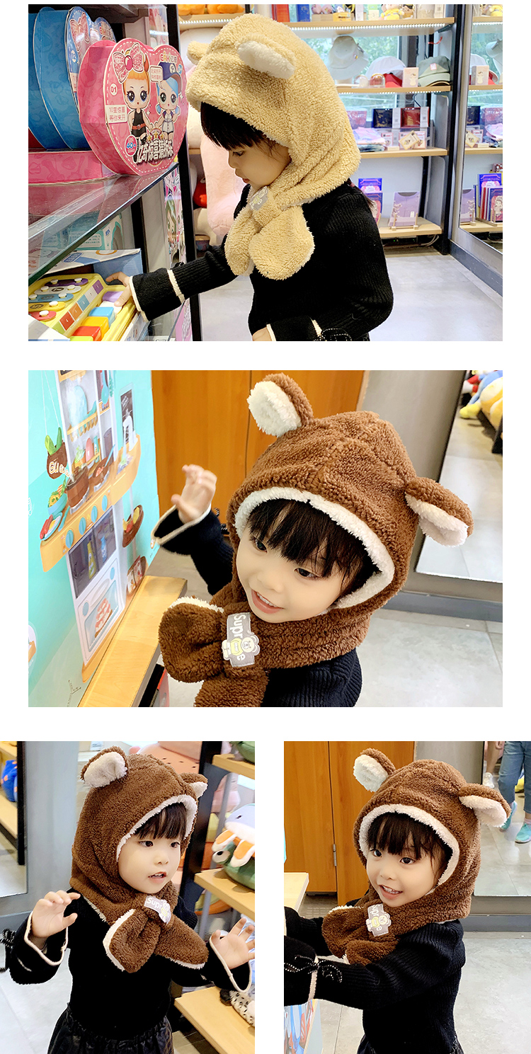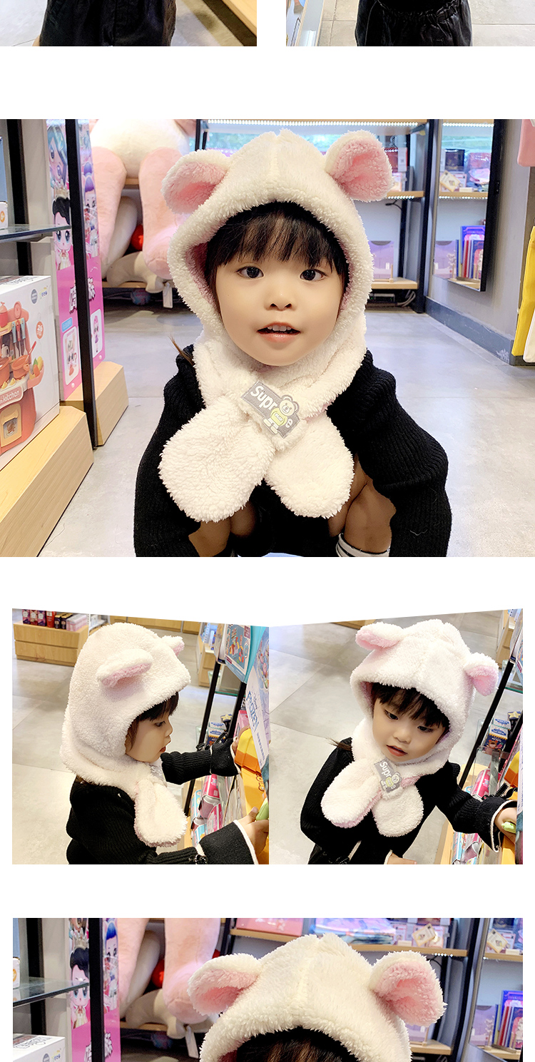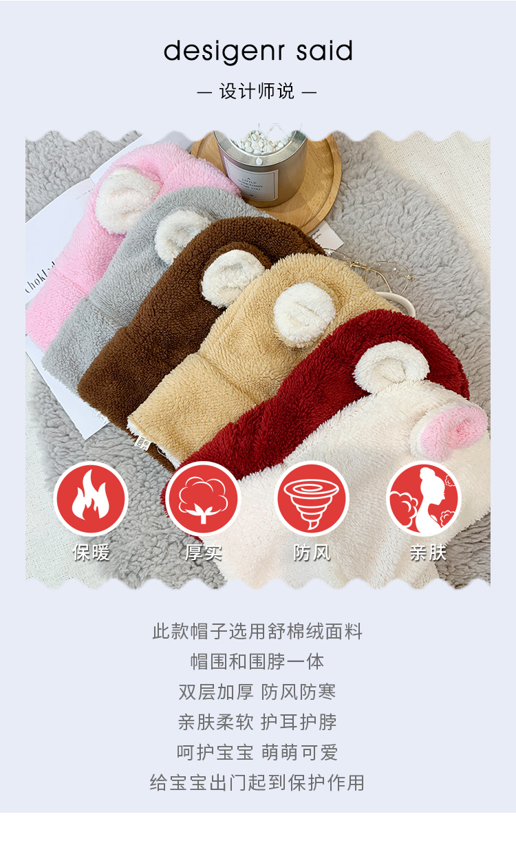 秋冬男女宝宝帽子1可爱儿童帽子加厚婴儿帽子护耳围巾围脖一体3岁