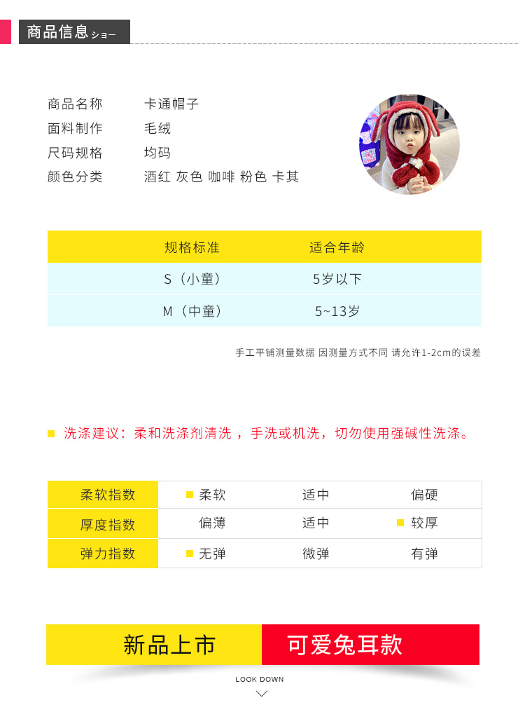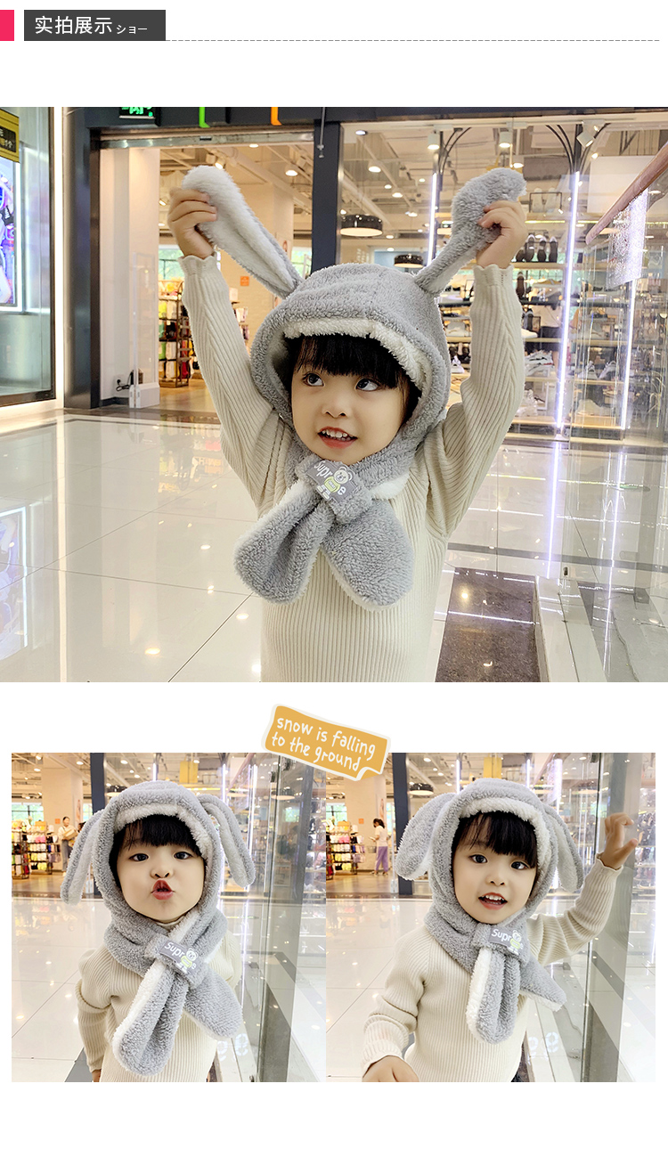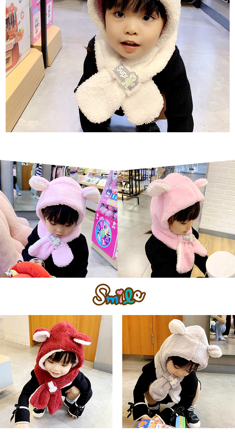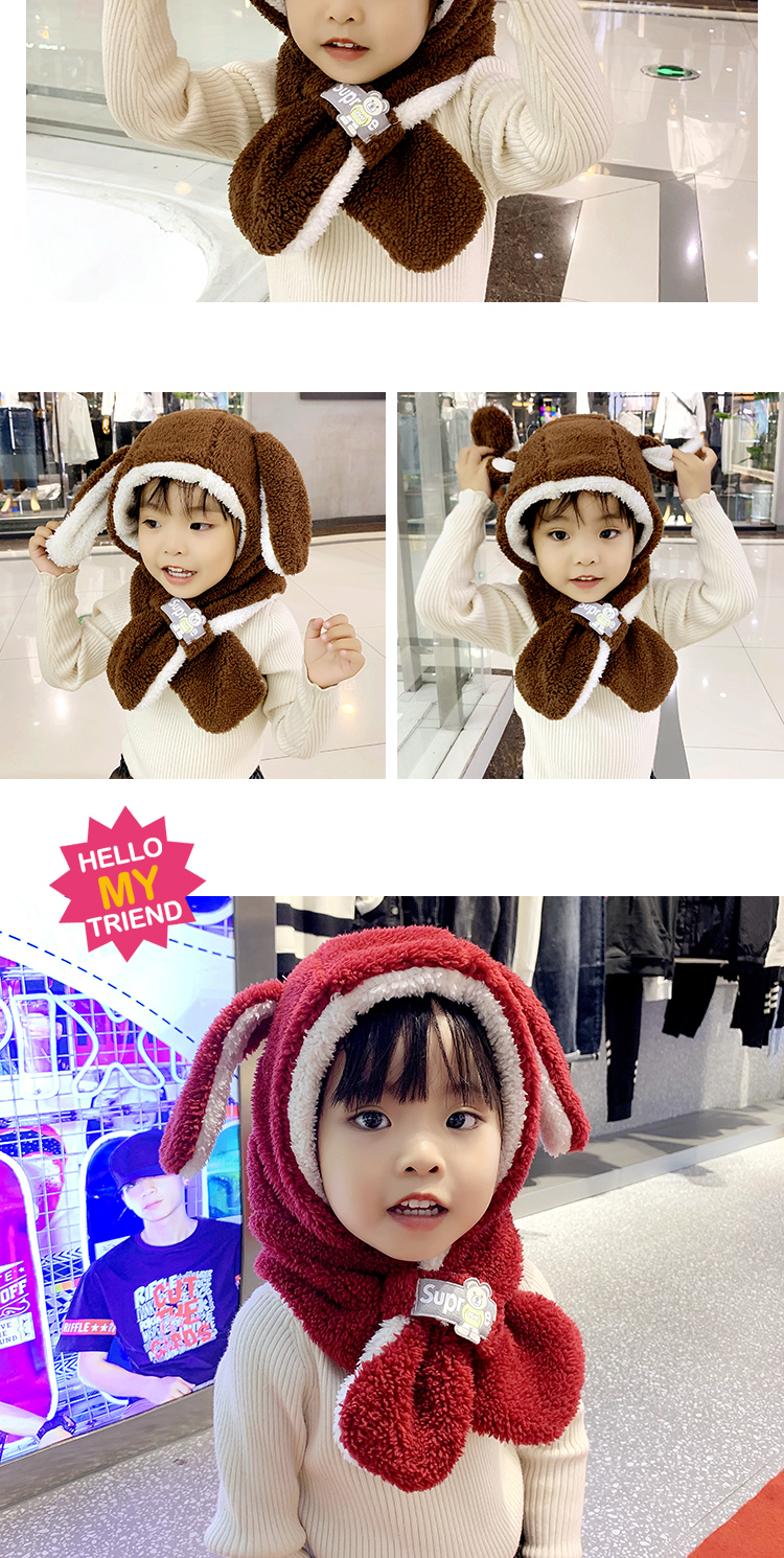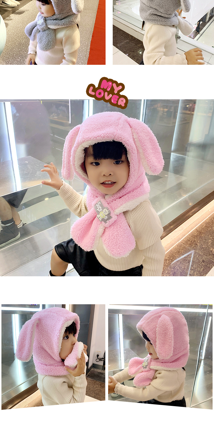秋冬男女宝宝帽子1可爱儿童帽子加厚婴儿帽子护耳围巾围脖一体3岁
