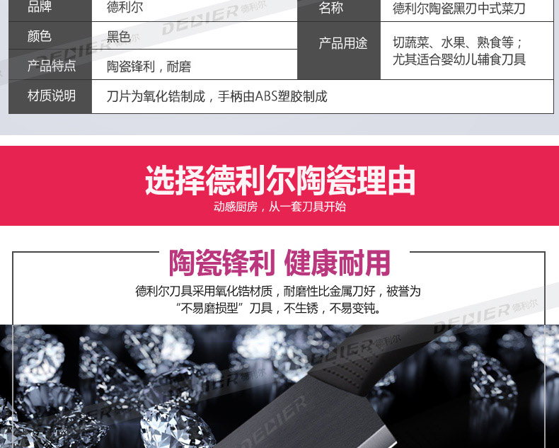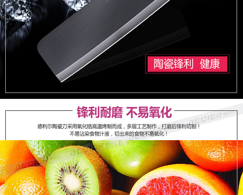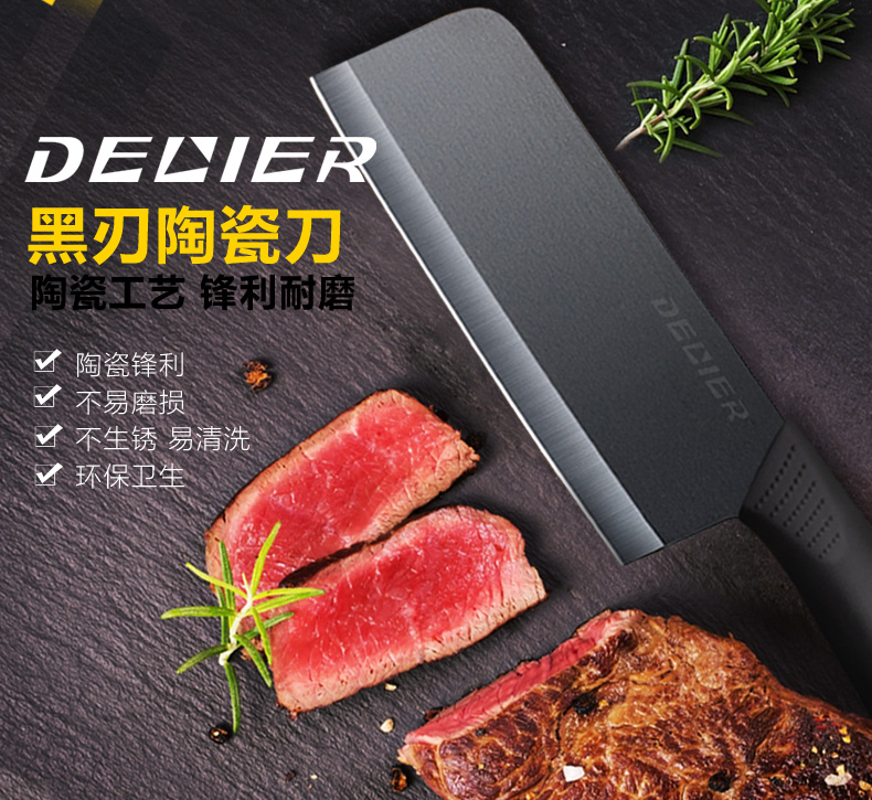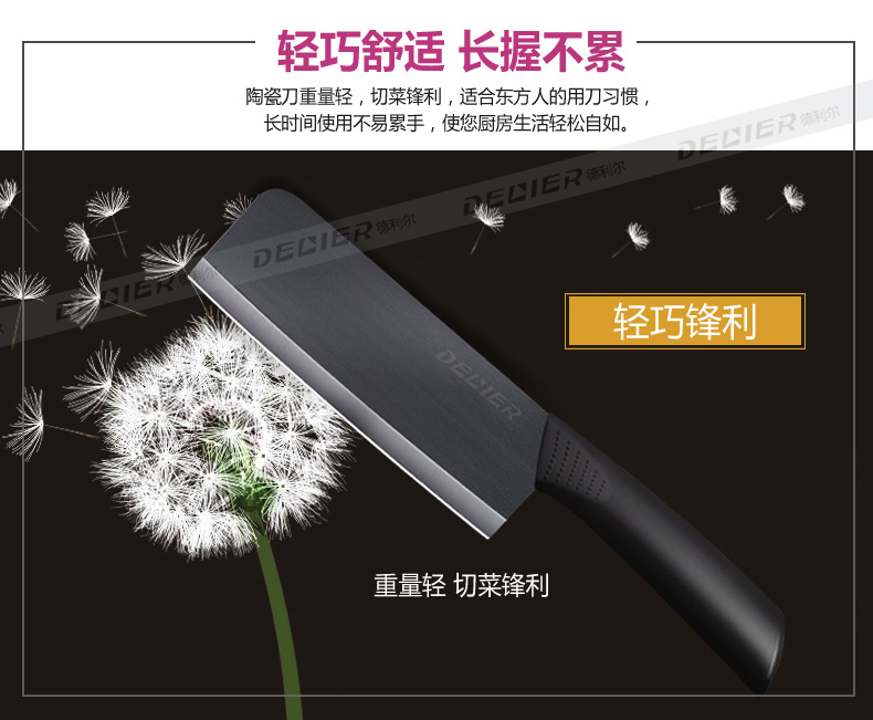 德利尔陶瓷菜刀黑刃陶瓷刀菜刀 德国切片切菜刀家用切肉厨房刀具
