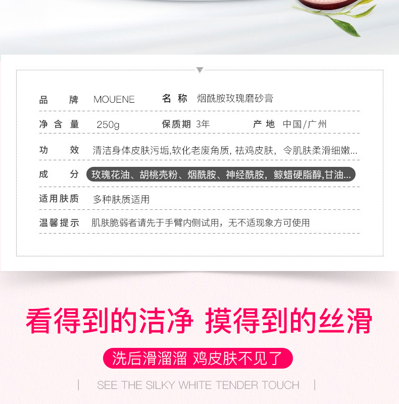 烟酰胺玫瑰身体磨砂膏去鸡皮去角质毛囊疙瘩女全身护理啫喱膏嫩肤