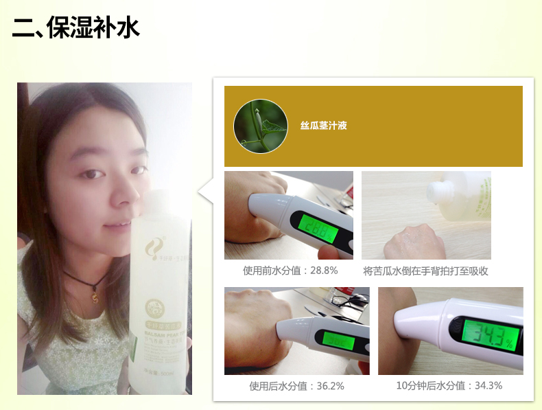 天然纯补水,深度滋养肌肤,补水舒缓,弹润亮肌,清爽细腻!肉眼可见的皮肤变得水润紧致,一瓶让肌肤喝饱水!
