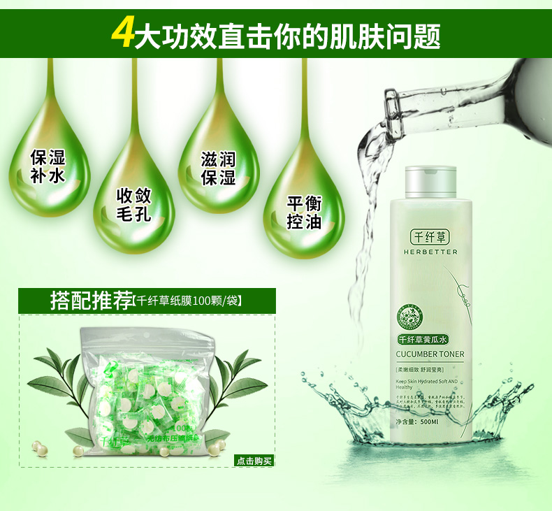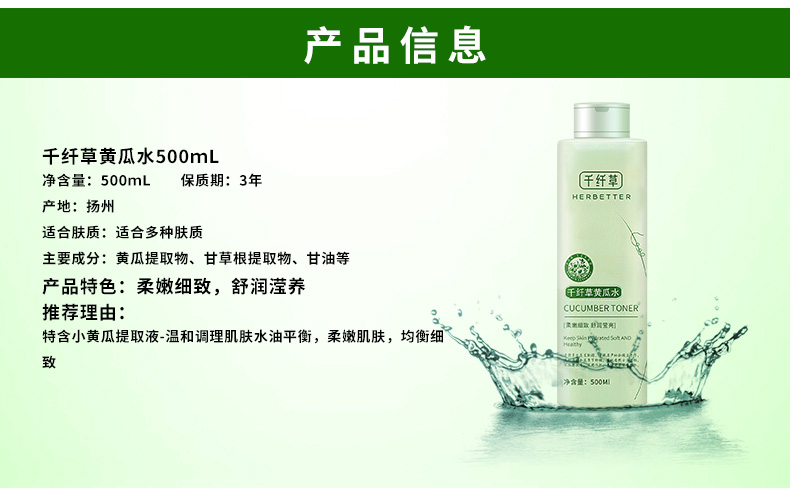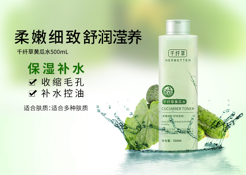 千纤草黄瓜水爽肤水补水保湿化妆水喷雾大瓶学生面膜水500ml