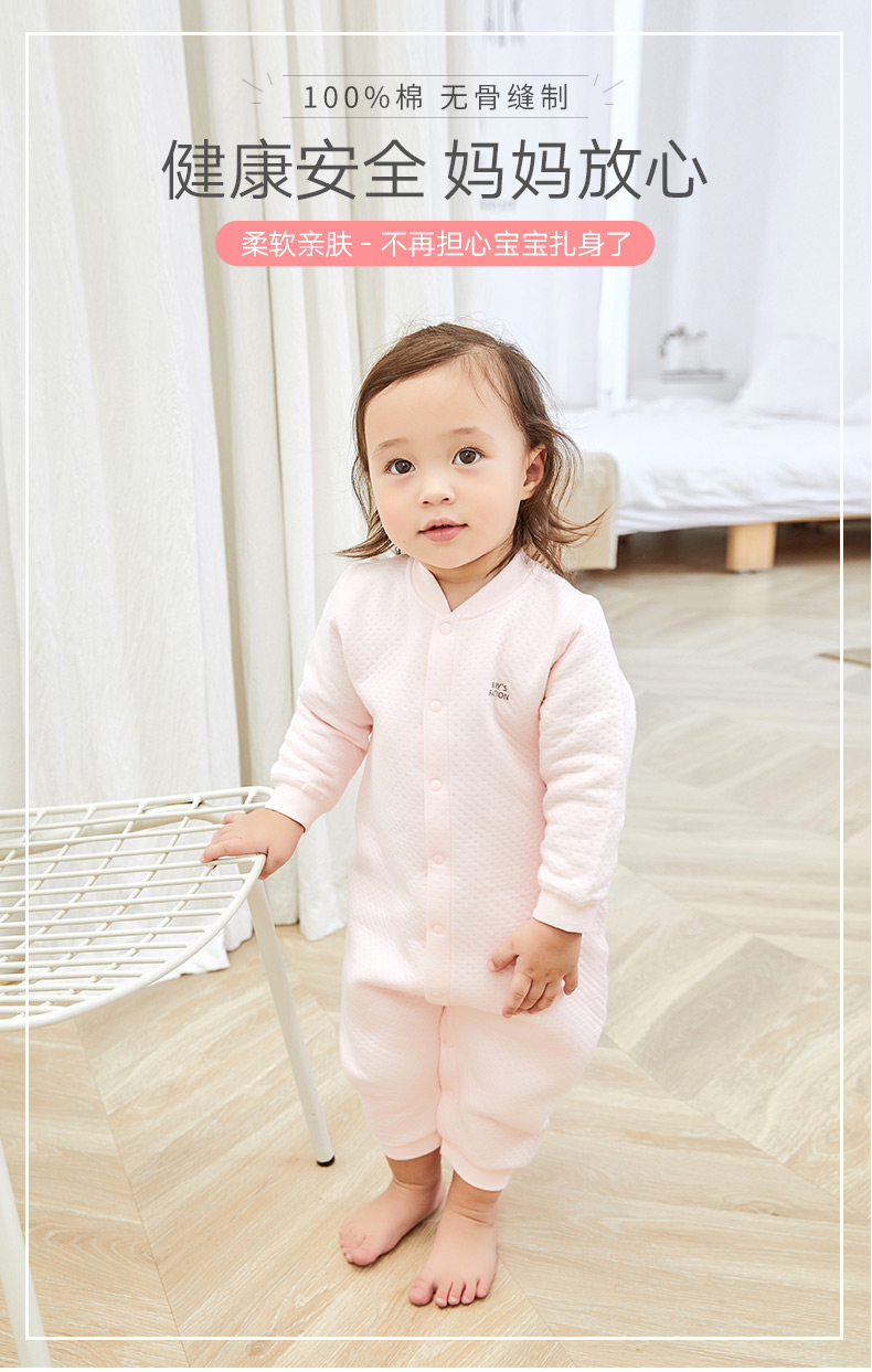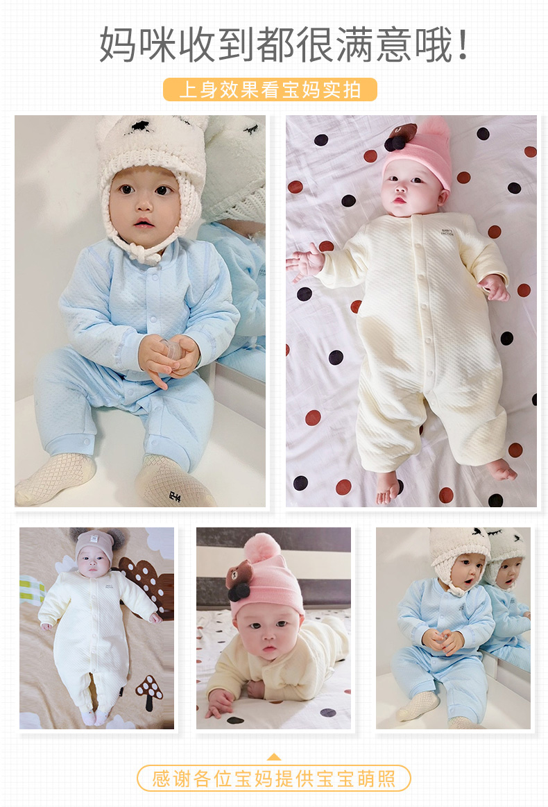 婴派婴儿夹棉连体衣秋冬加厚新生幼儿哈衣男女宝宝保暖衣服爬爬服