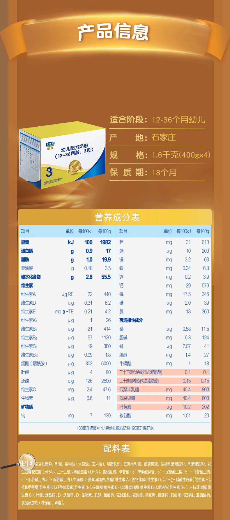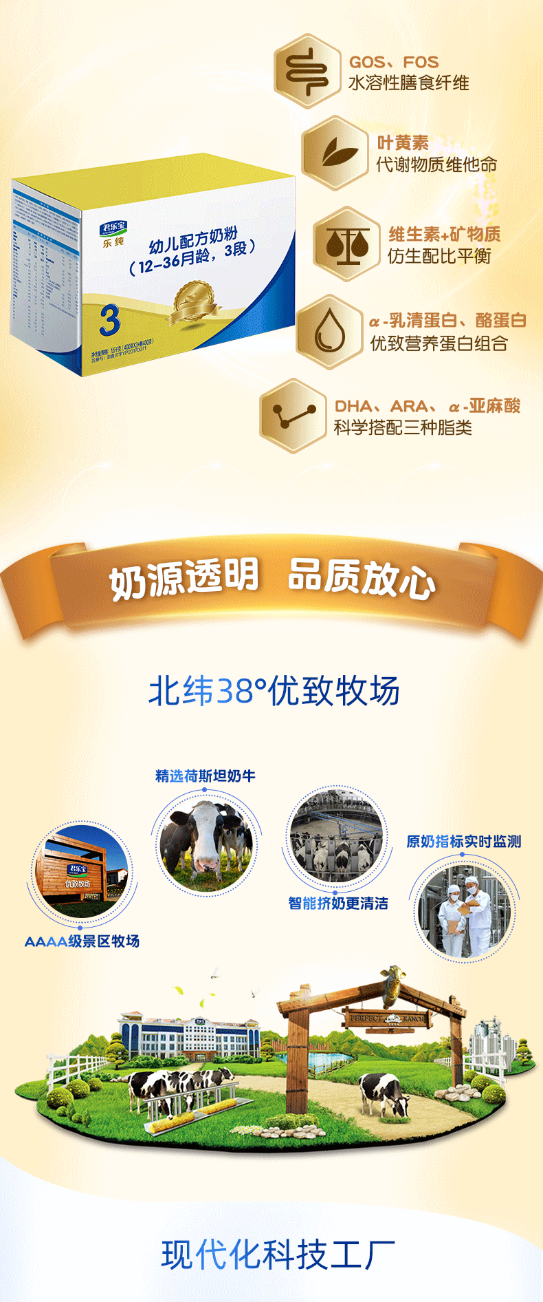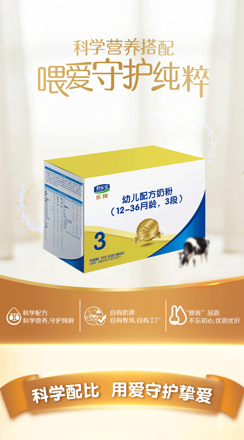 君乐宝奶粉3段乐纯四联包牛奶粉三段1600g旗舰店官网授权