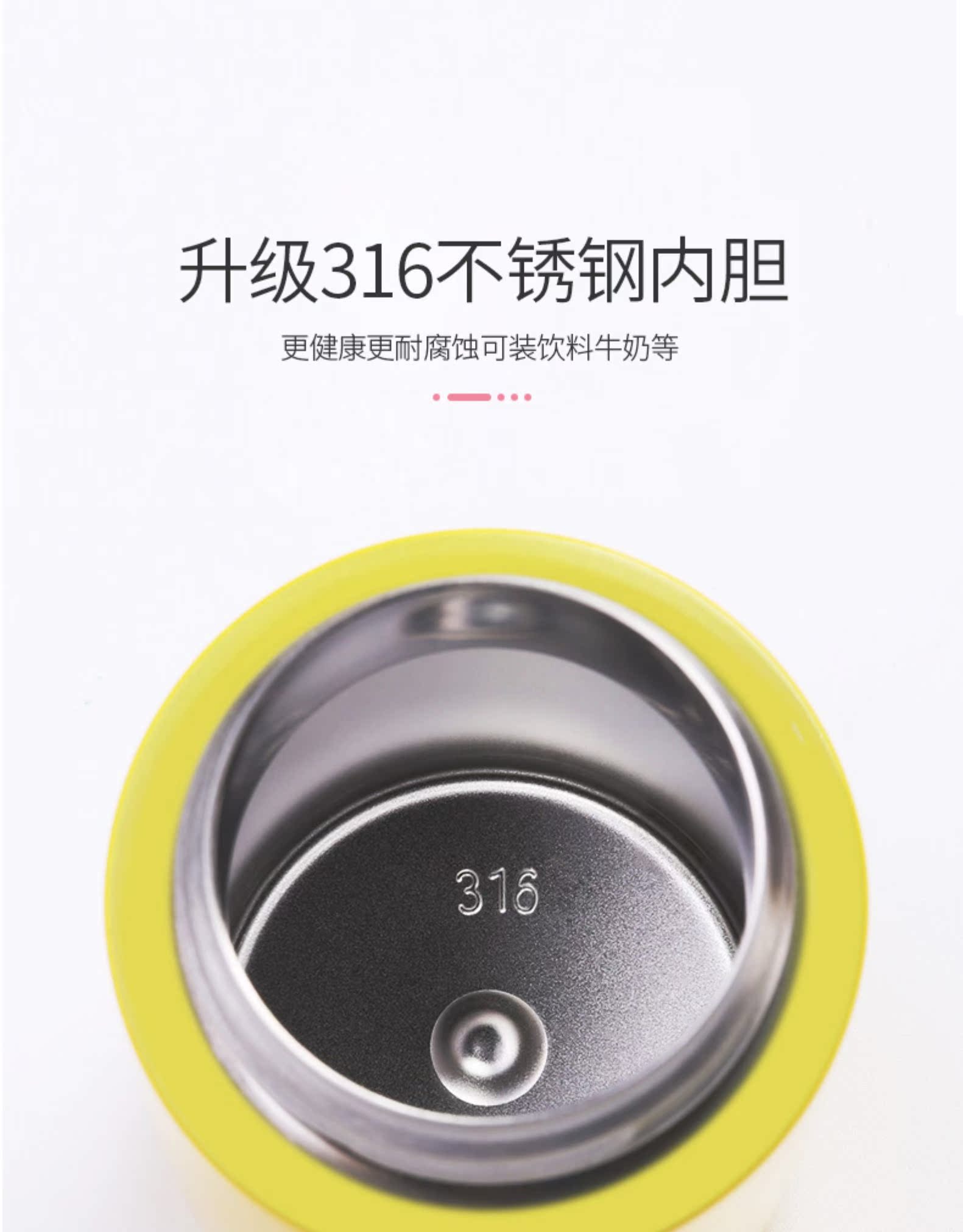 不锈钢材质,内升级316胆,更环保更耐腐,24小时长效锁温,环保健康结实耐用,可爱便携简约爱上喝水。送杯套杯刷多款可选