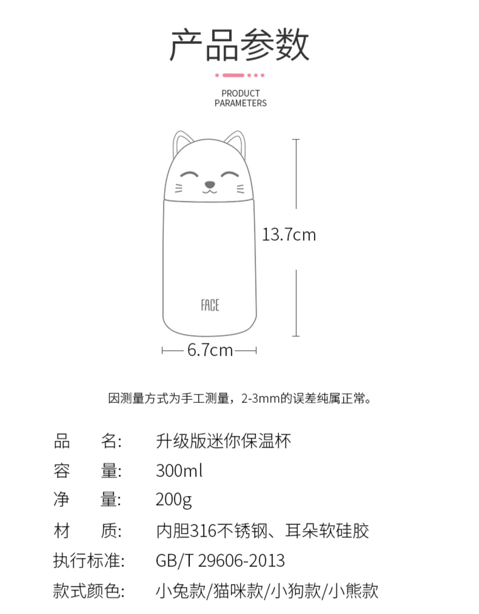 face保温杯女316不锈钢儿童迷你可爱超萌创意便携小巧学生水杯子