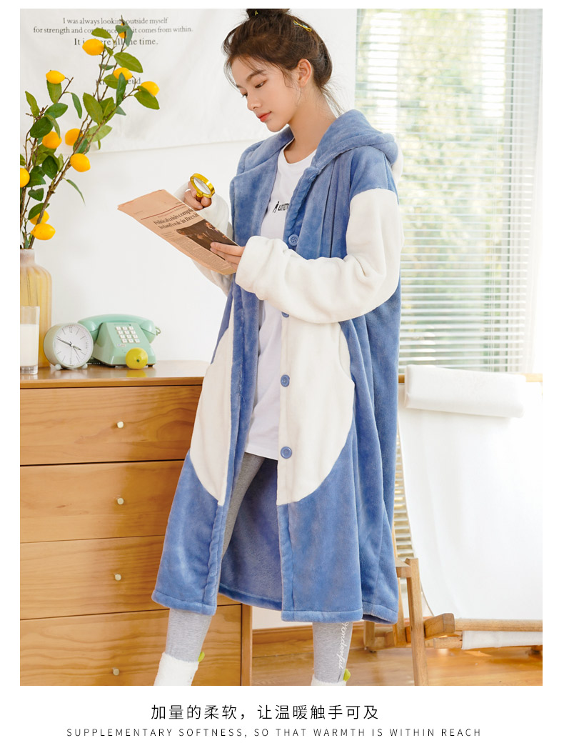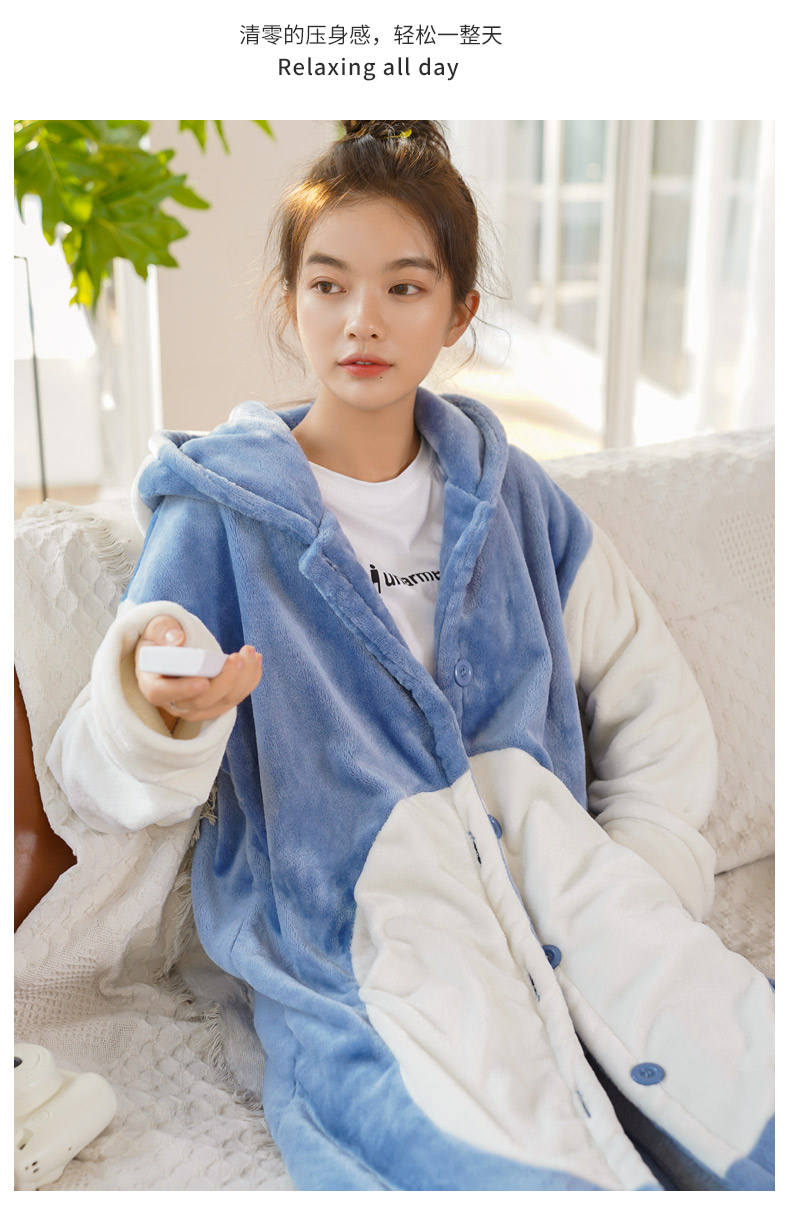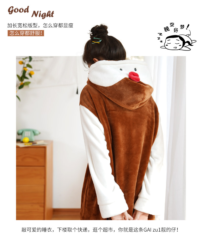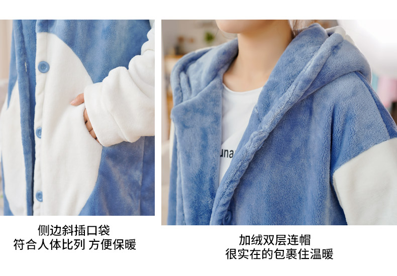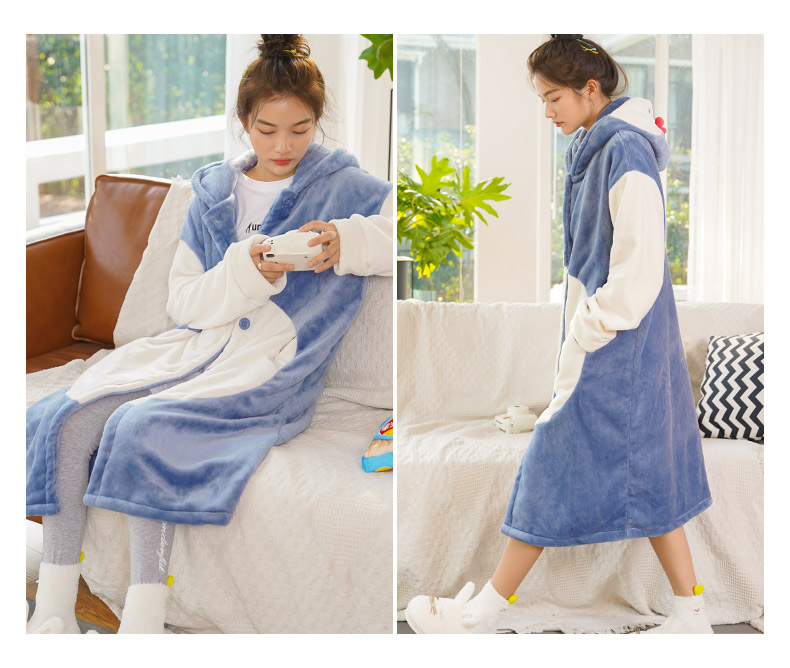 睡袍女秋冬可爱长款加厚法兰绒睡衣冬季浴袍保暖家居服可外穿睡裙