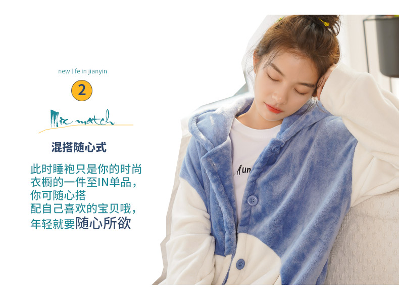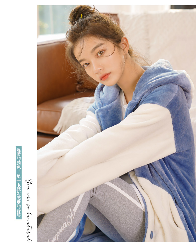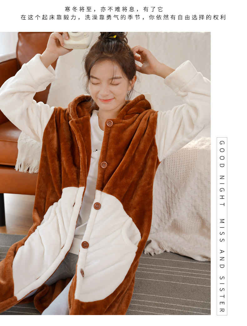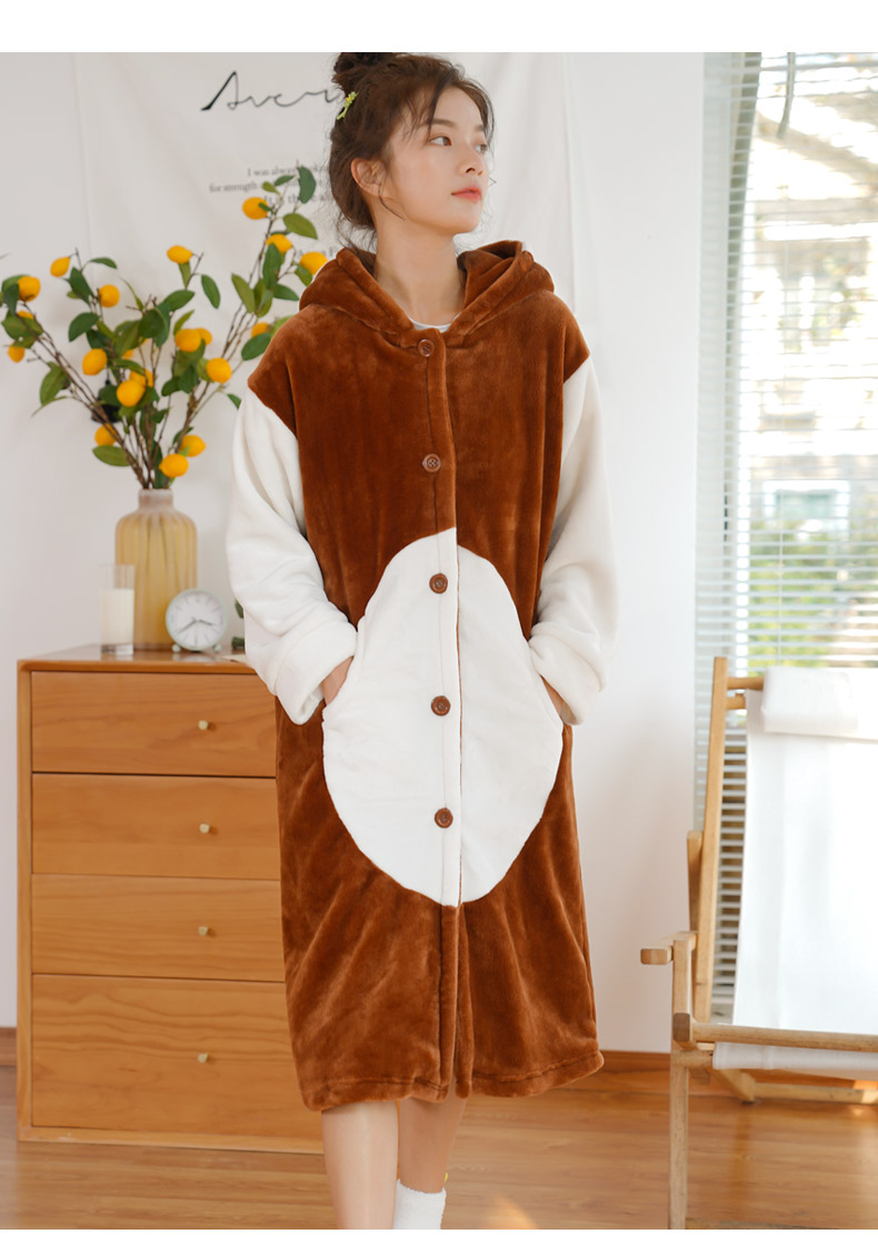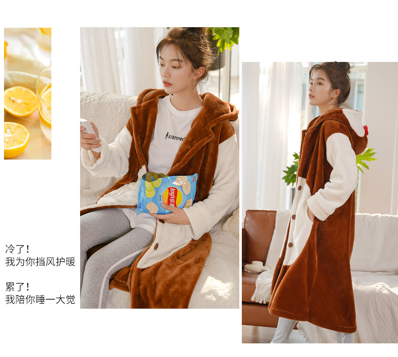 睡袍女秋冬可爱长款加厚法兰绒睡衣冬季浴袍保暖家居服可外穿睡裙