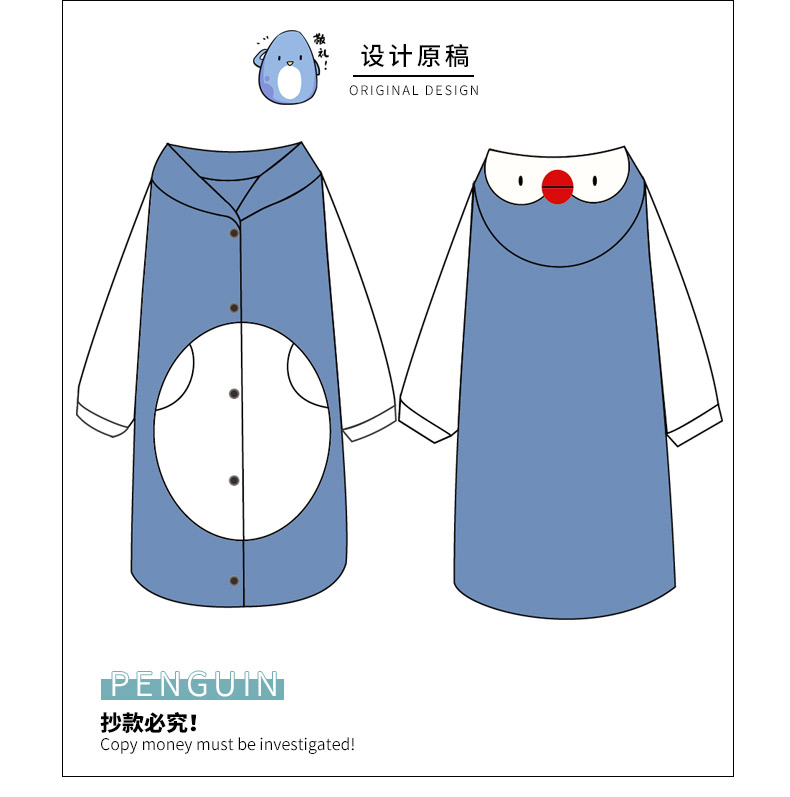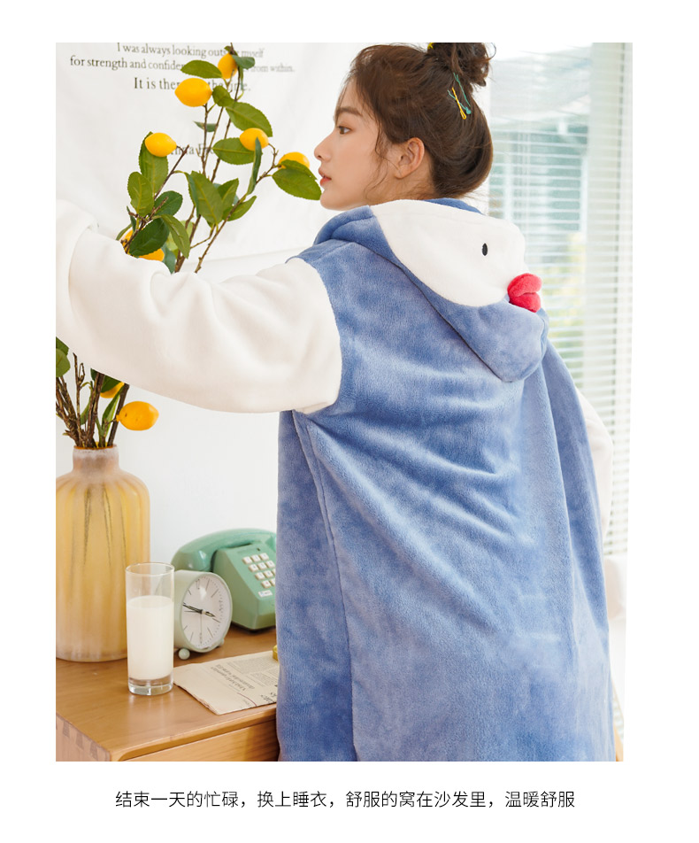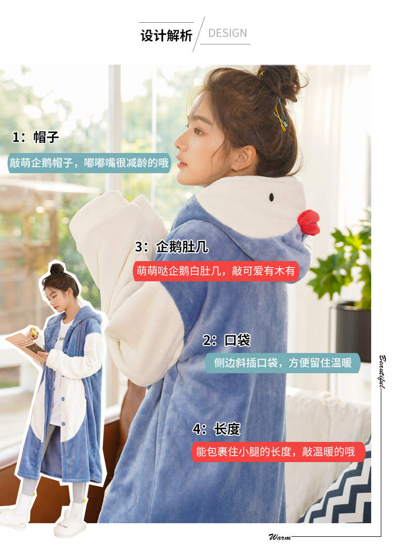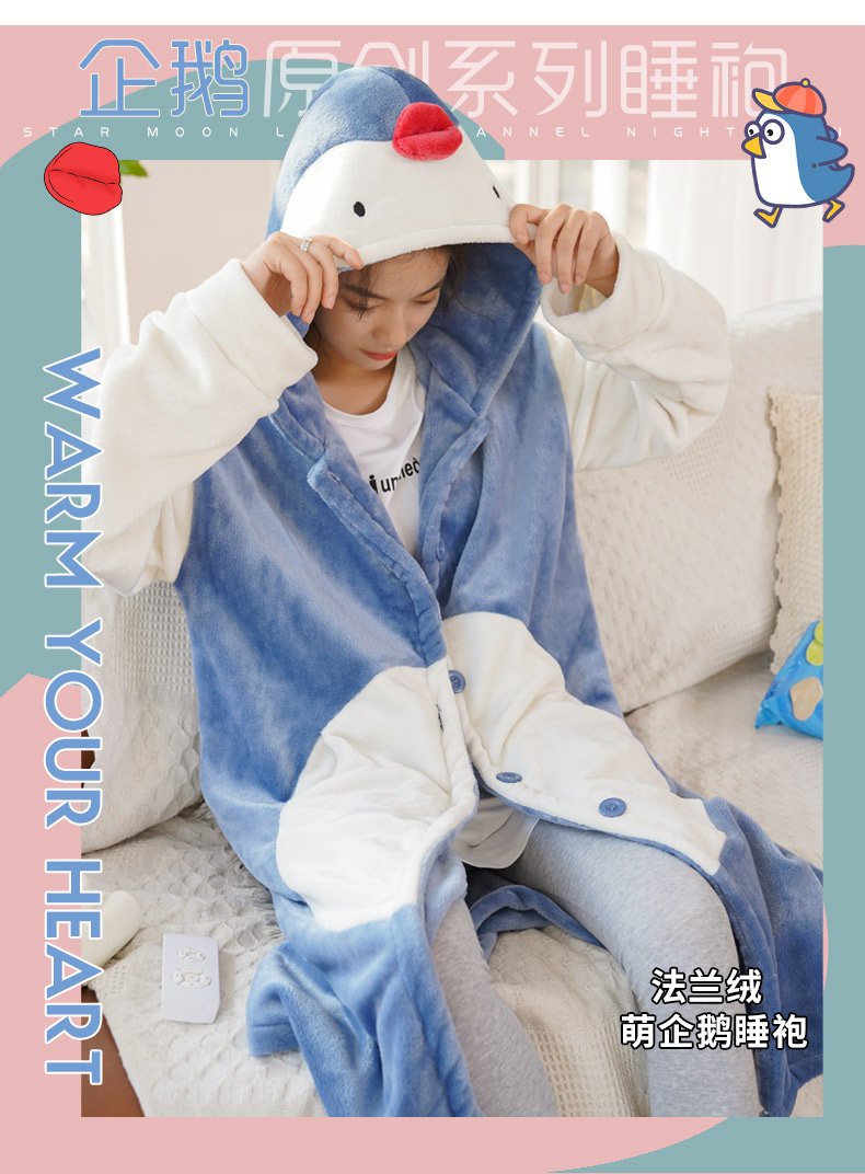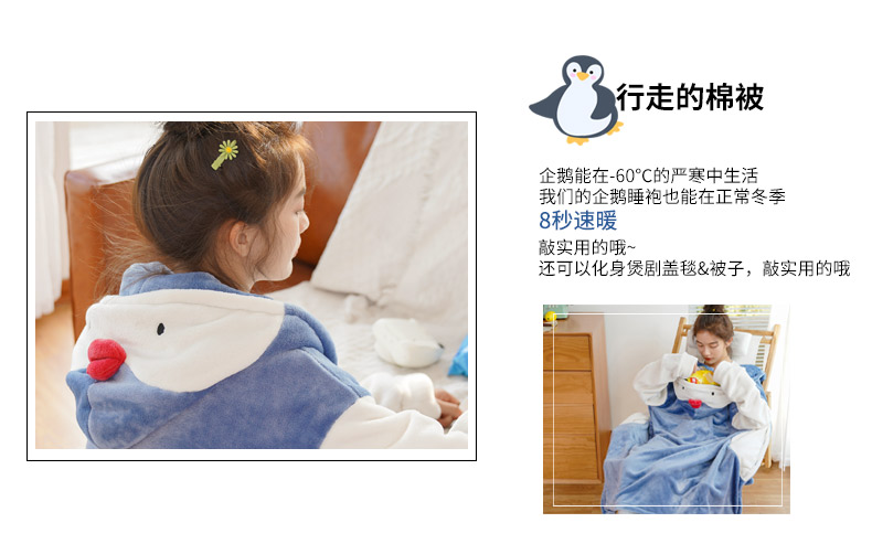 可爱企鹅,330g法兰绒,保暖舒适,午夜煲剧,化身防寒盖毯+零食袋,加长睡袍包裹住小腿,锁住温暖,敲实用的哦