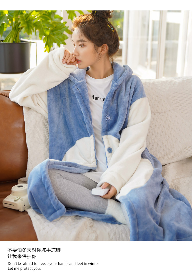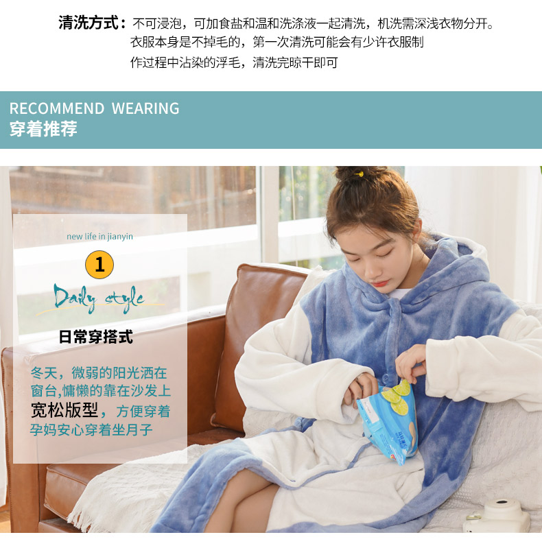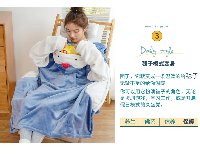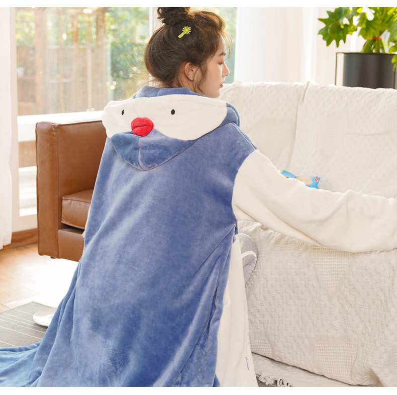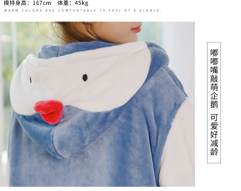 可爱企鹅,330g法兰绒,保暖舒适,午夜煲剧,化身防寒盖毯+零食袋,加长睡袍包裹住小腿,锁住温暖,敲实用的哦