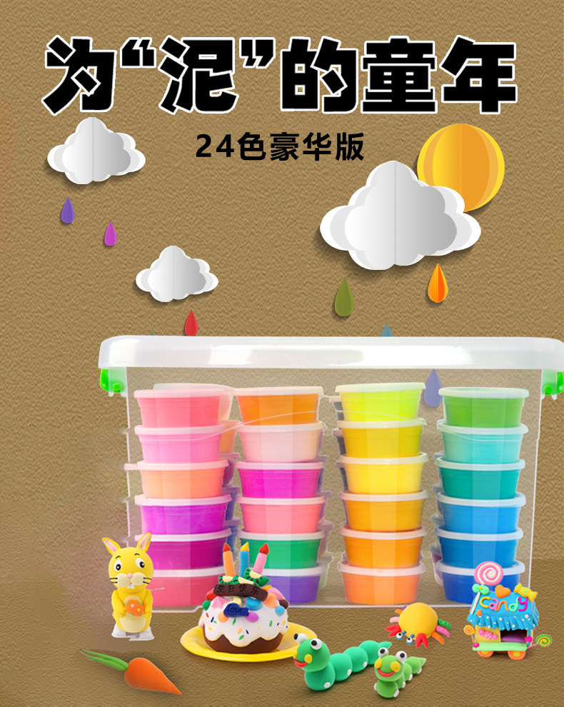 【天猫正品】环保优质材料,无毒环保,宝宝的作品可以保存很久,色彩丰富可塑性强,充分锻炼孩子动手能力和想象力!来吧速度抢购吧!全国包邮!