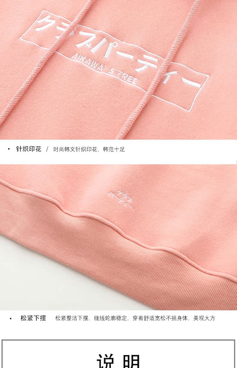 秋遇日系新款,秋冬韩版宽松连帽休闲,可爱字母毛绒,亲肤天然混纺绒,柔软舒适,富有弹性,垂坠感好文艺v领口,公主风袖口【正品保证】