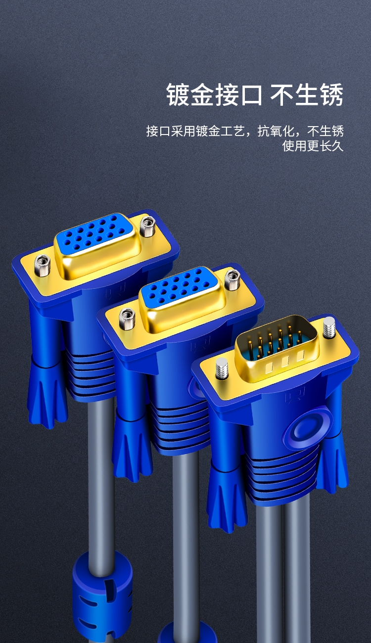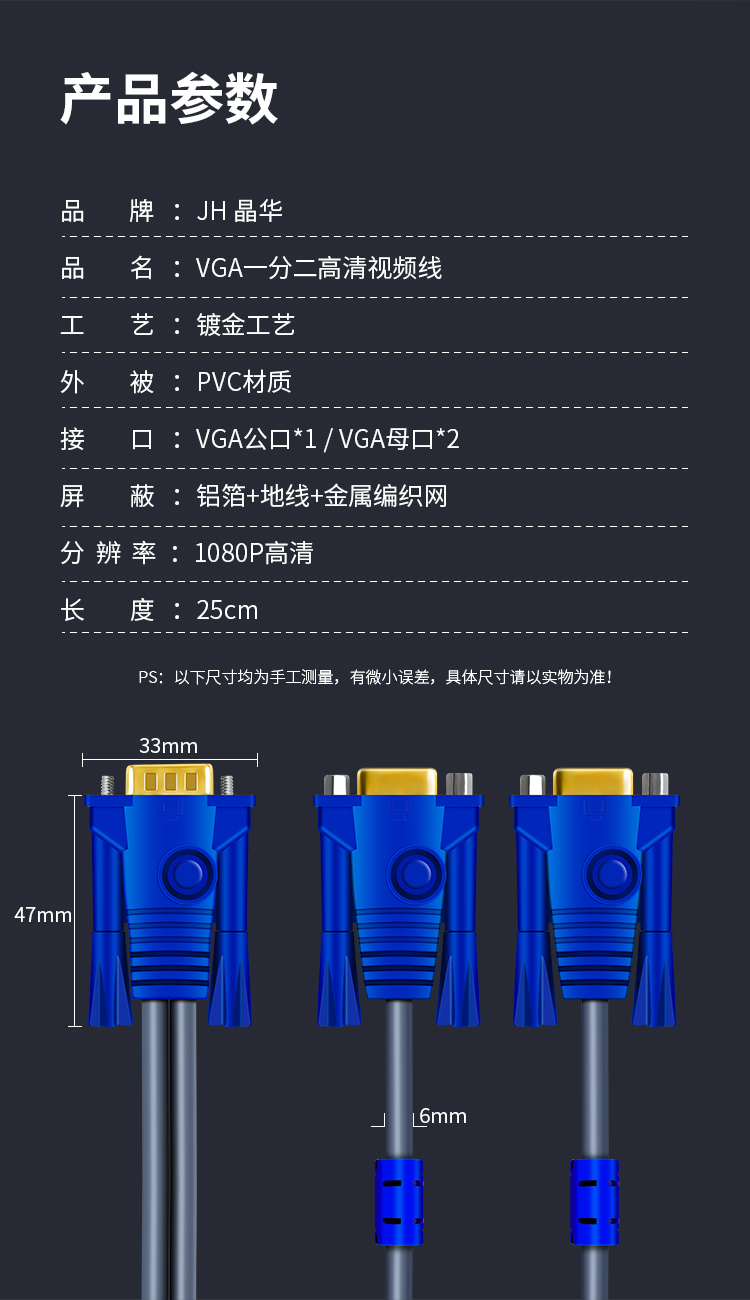 晶华 vga一分二分配器电脑显示器投影仪分屏器一进二出1分2转换线