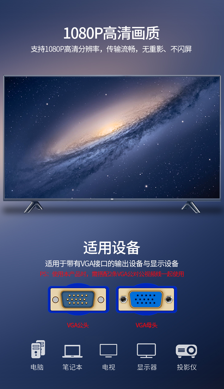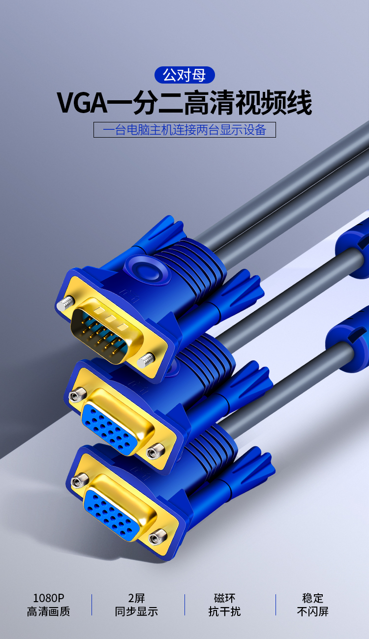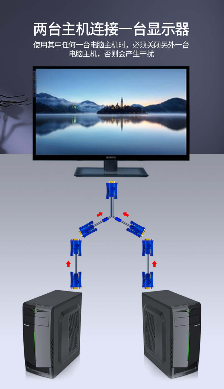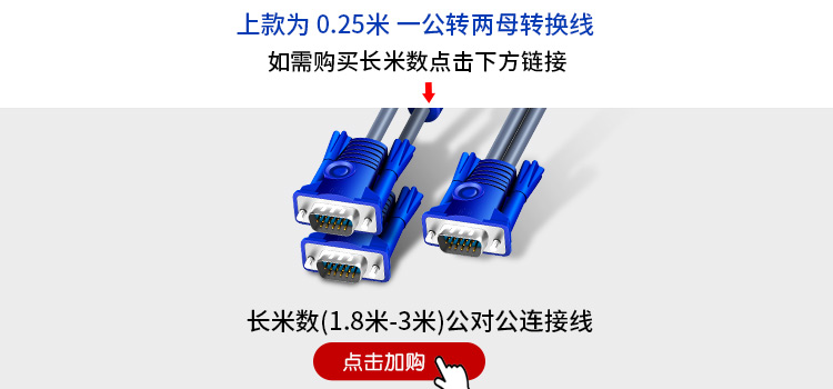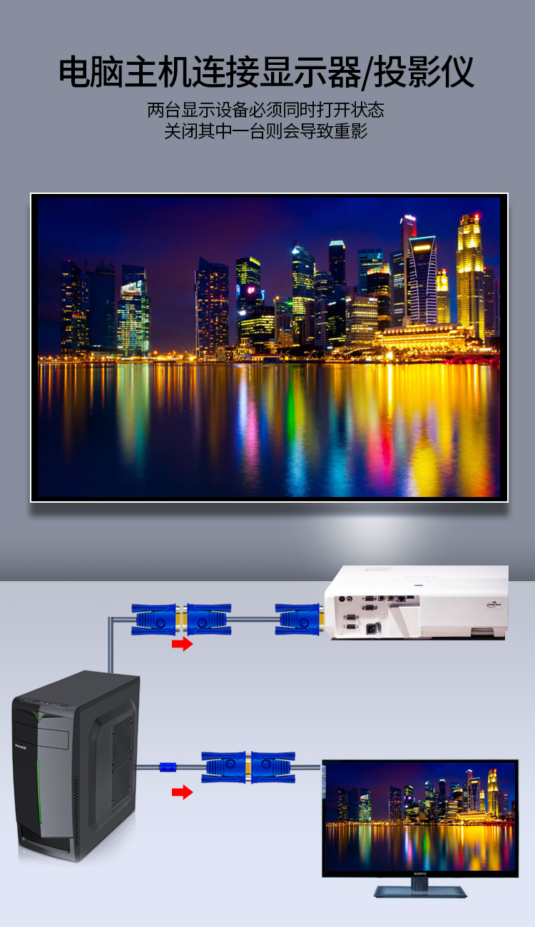 vga一分二,分配器电脑显示器,投影仪分屏器,一进二出1分2转换线,无忧退换货,正品保证,即插即用,线长0.25米!【赠运费】