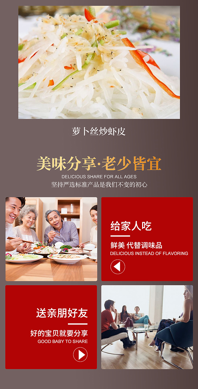 源自无污染海域的新鲜虾皮,个个肉质饱满,大小均匀,富含钙、铁、磷微量元素与蛋白质,煮粥煮汤放一点,营养又美味!