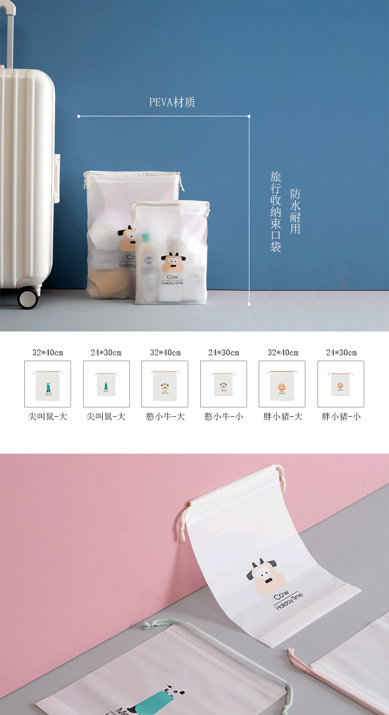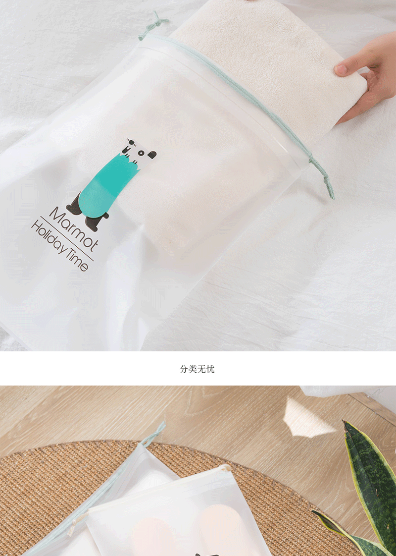 旅游衣服整理,透明、密封收纳袋,密封袋束口抽绳,有效分类整理行李箱,密封袋可以防水、防尘、防潮,密封,磨砂质感,多用途,值得信赖~