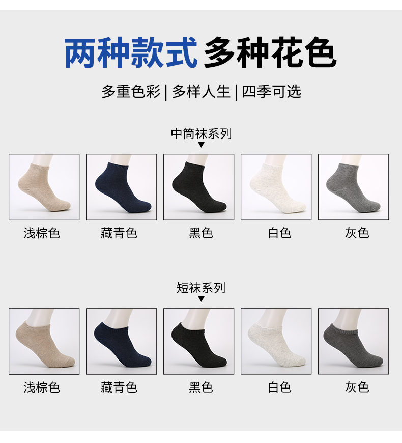男士袜子中筒棉袜隐形船袜短袜运动袜秋冬常规款黑白色纯色透气潮