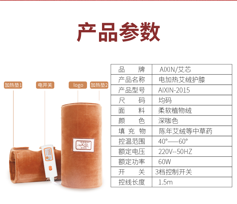 艾芯电热护膝老寒护腿关节保暖 艾灸膝盖加热 艾绒电热护膝 暖膝