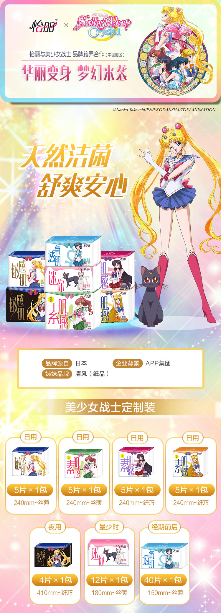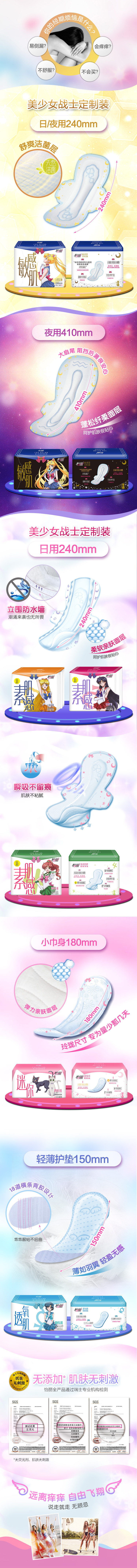 怡丽美少女7包日夜用超薄棉柔敏感肌天然洁菌卫生巾姨妈巾76片