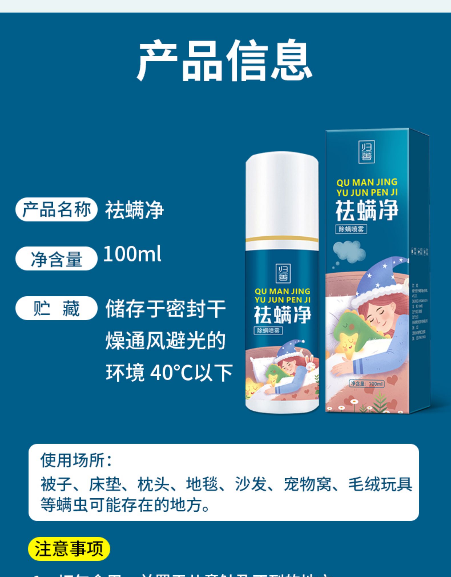 除螨虫喷雾天然植物祛螨虫神器除螨包家用床上免洗杀虫祛满喷雾剂