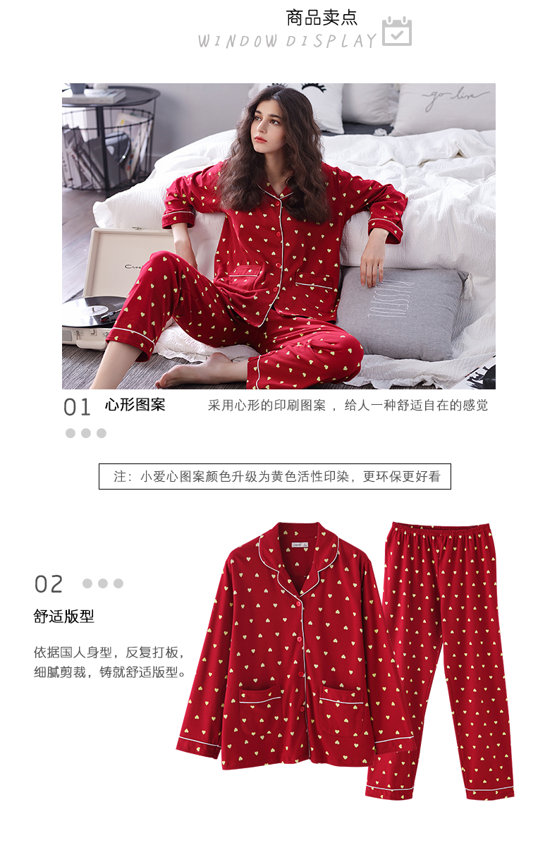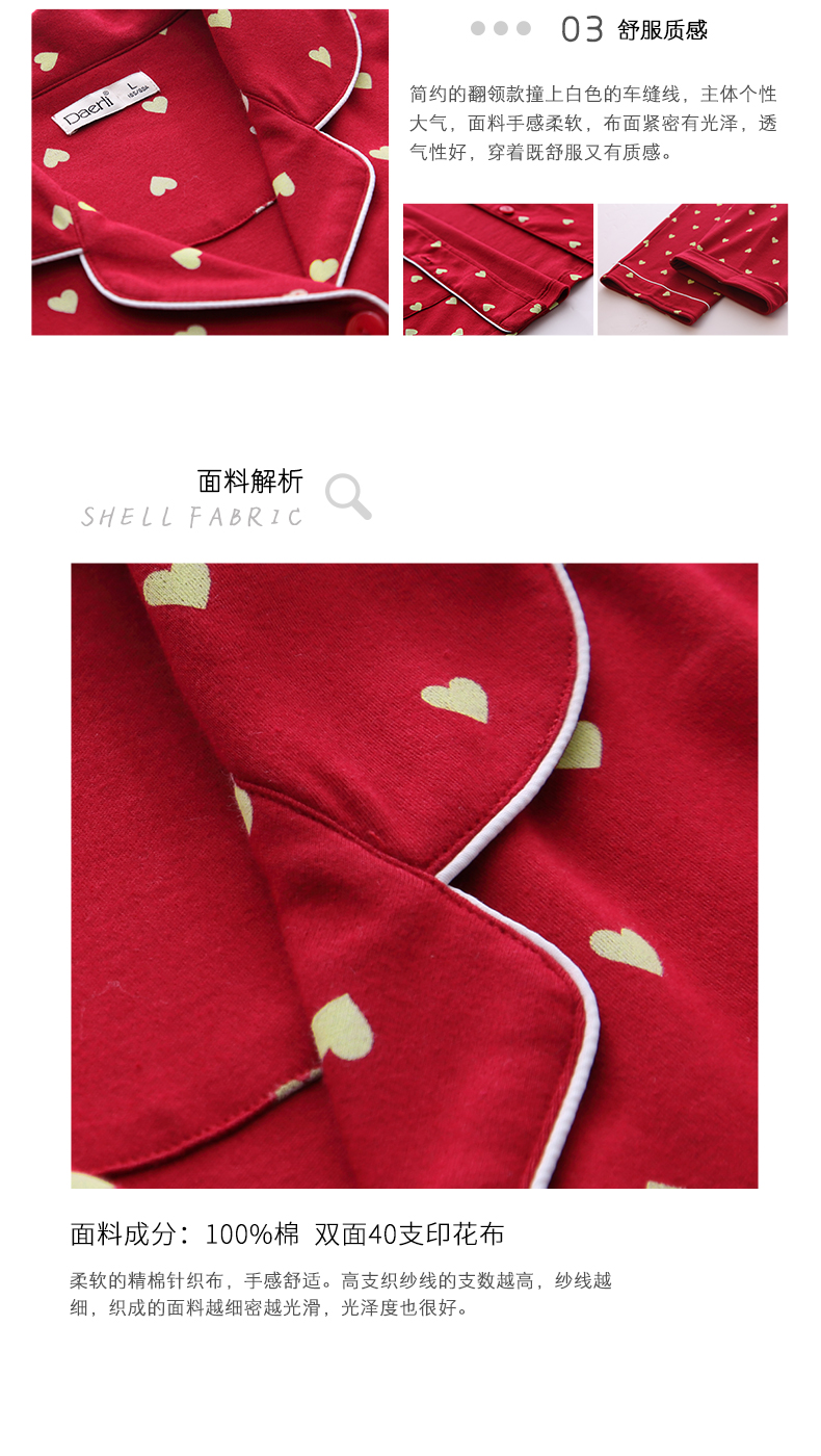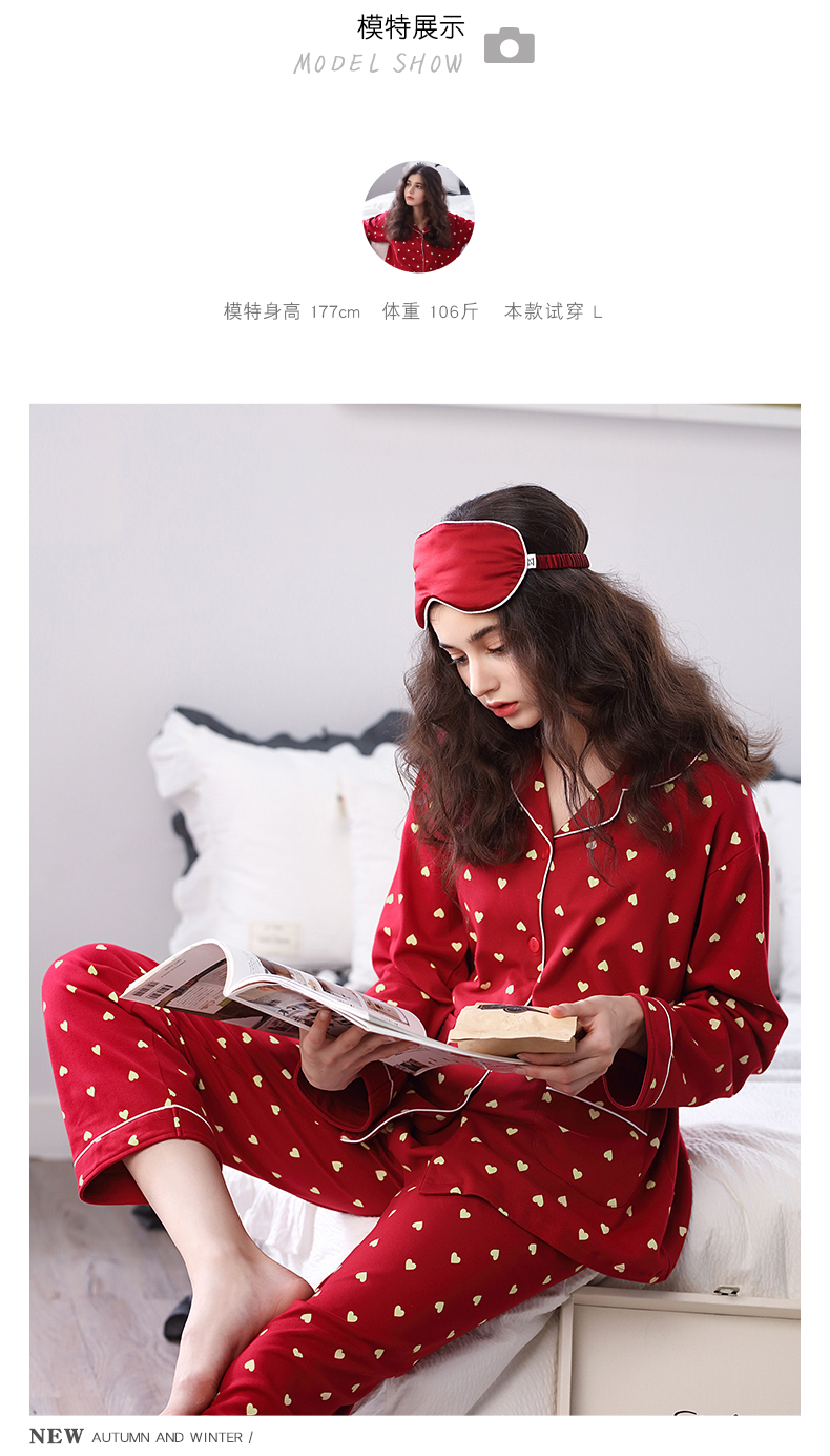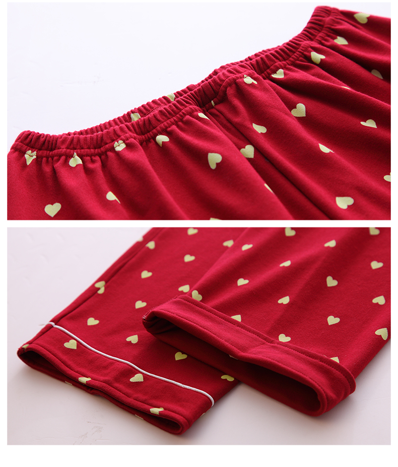 达尔丽睡衣女秋冬纯棉长袖两件套红色本命年甜美开衫家居服套装