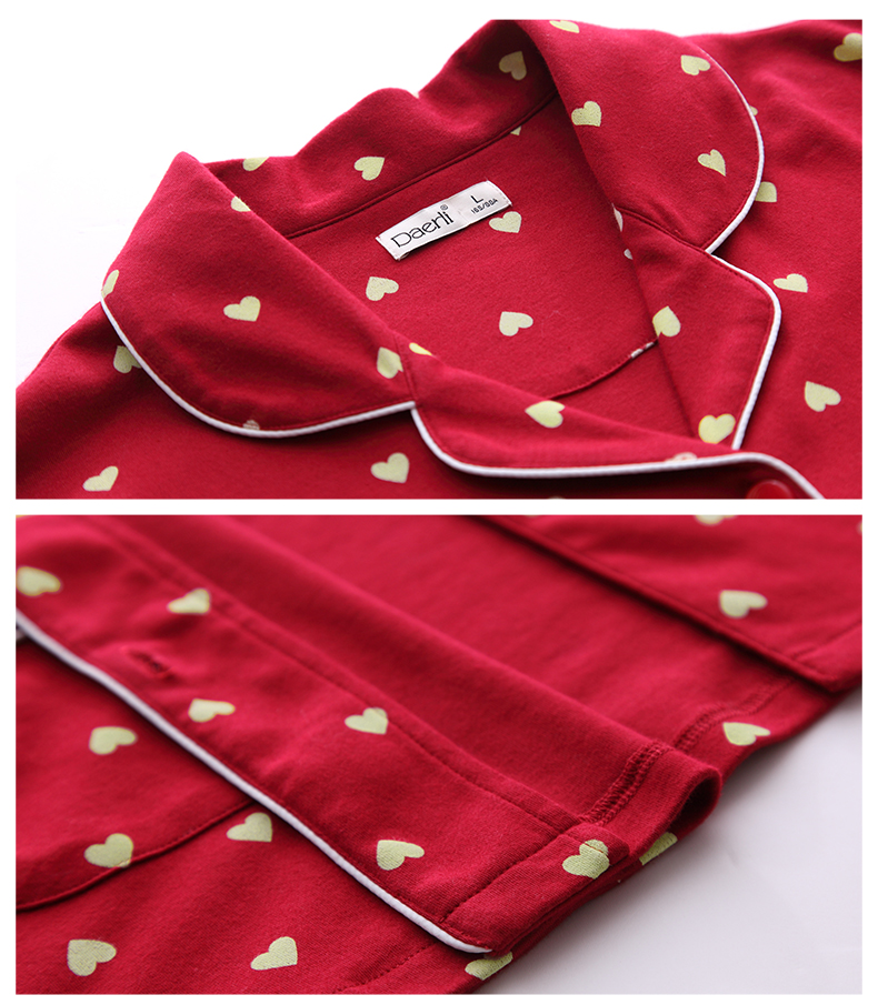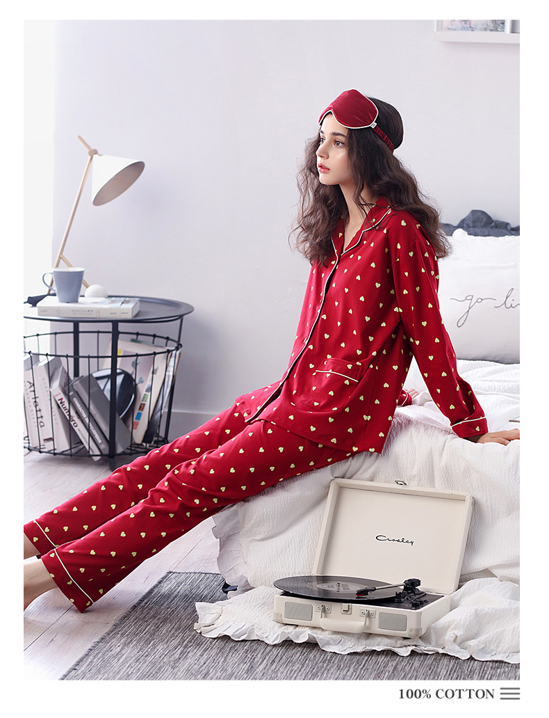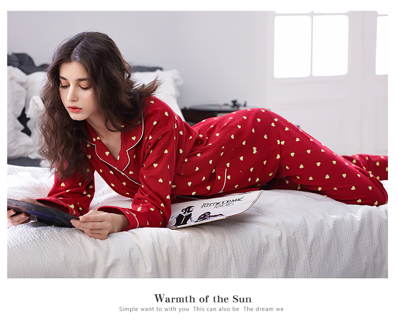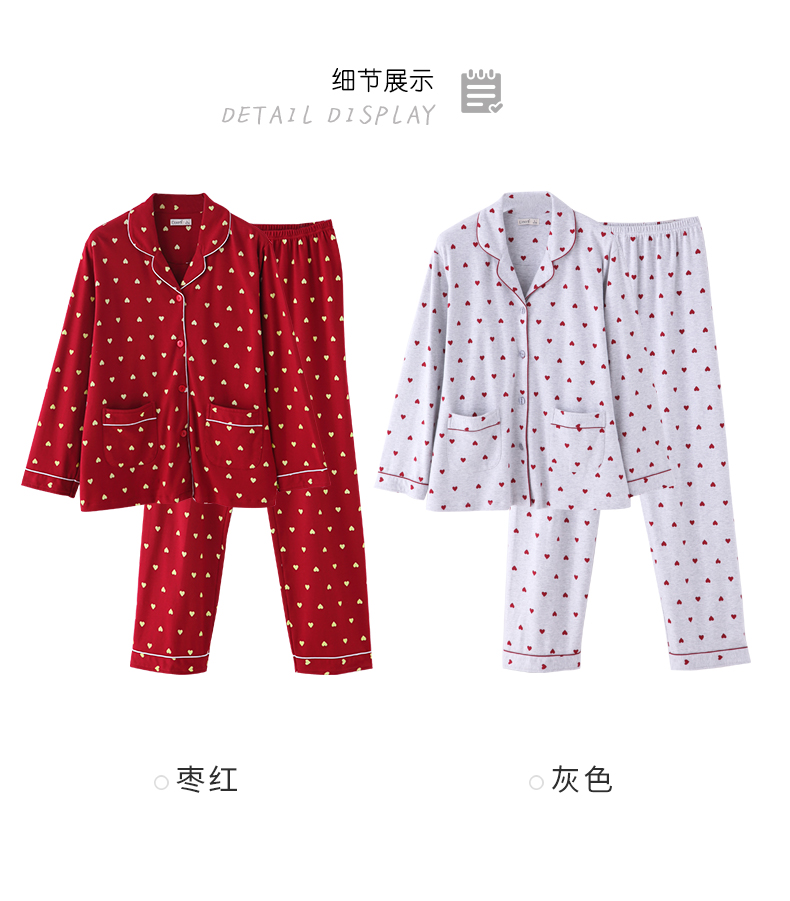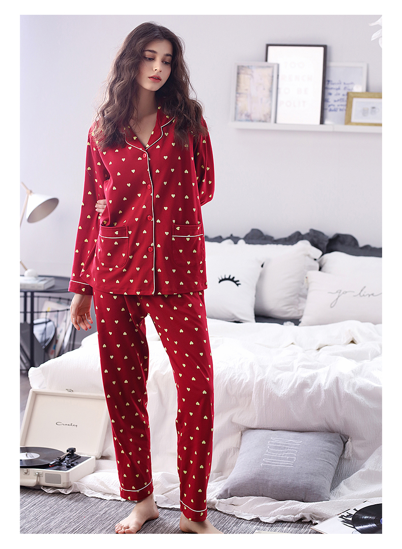 达尔丽睡衣女秋冬纯棉长袖两件套红色本命年甜美开衫家居服套装