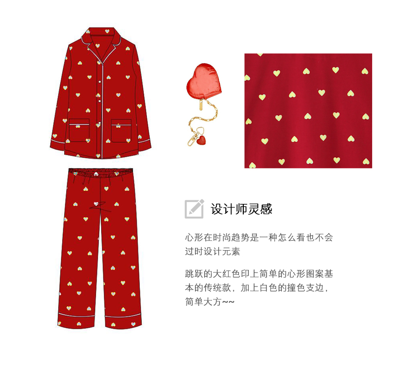 女士莫代尔睡衣,采用心形的印刷图案,依据国人版型,反复打板,细腻剪裁,铸就舒适版型,细腻亲肤,柔软弹力,上身舒适自在无束缚,质感丝滑