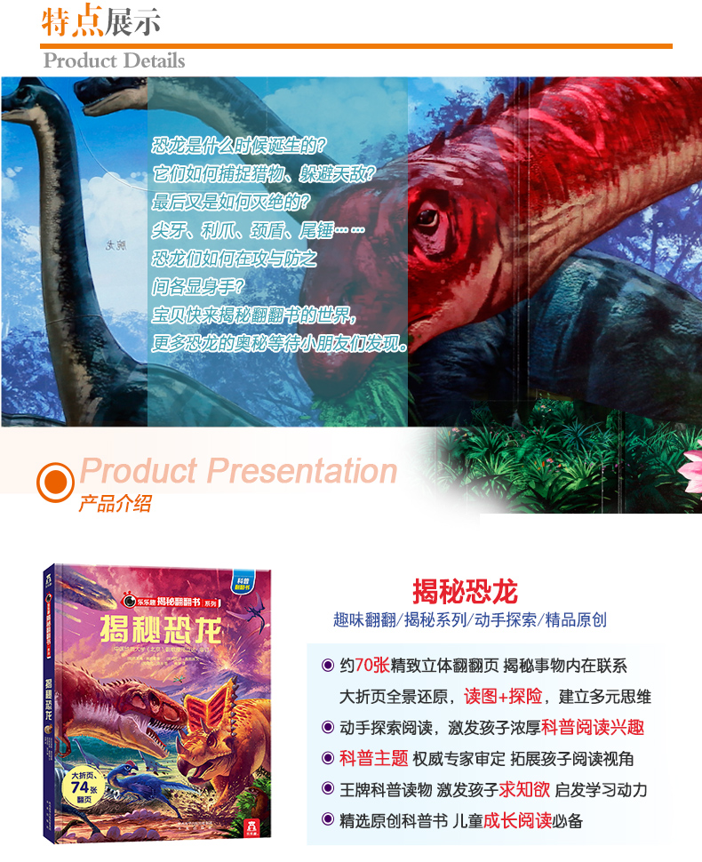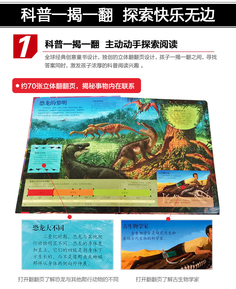 新版揭秘恐龙 乐乐趣揭秘翻翻书第二辑宝宝书籍3-6-7-10岁科普童书 恐龙书3d版立体 儿童读物侏罗纪幼儿园小学生课外畅销书籍