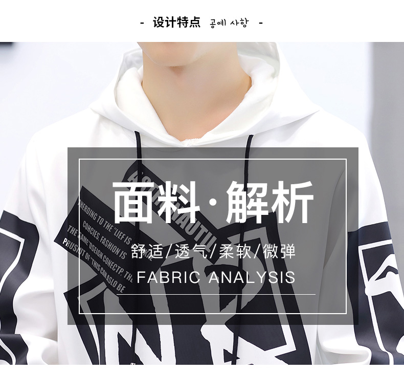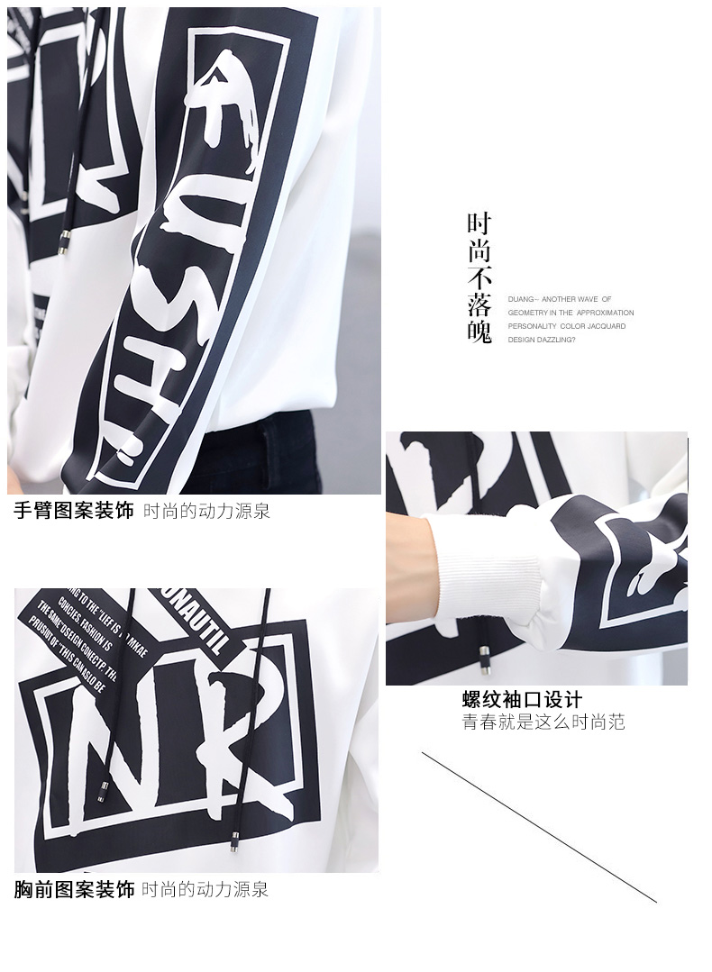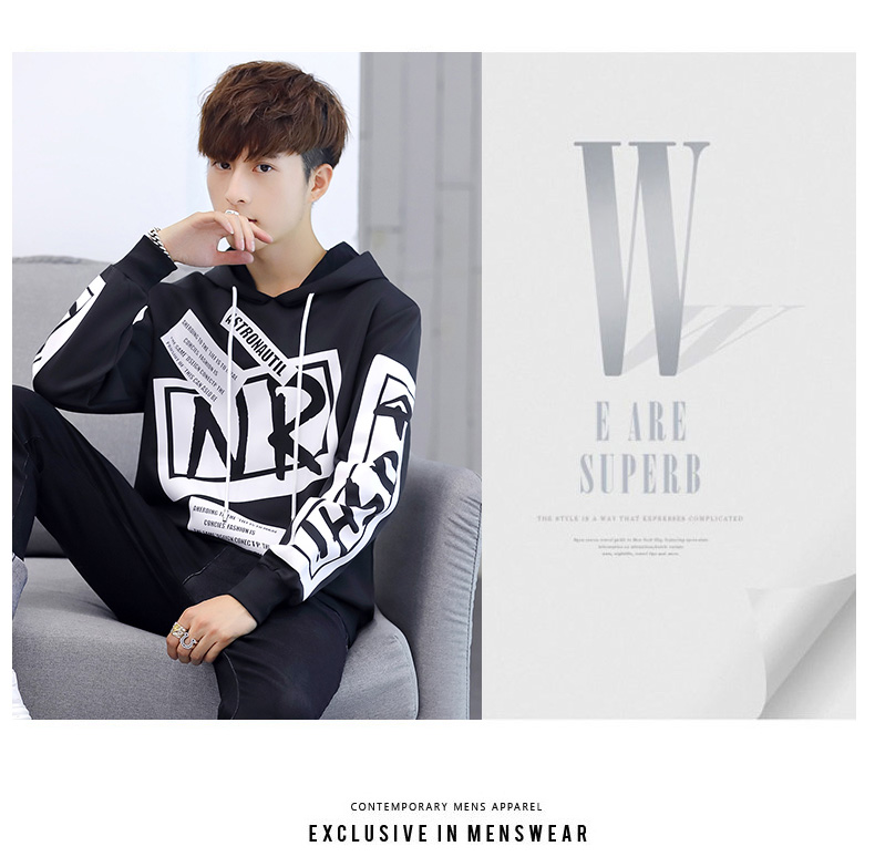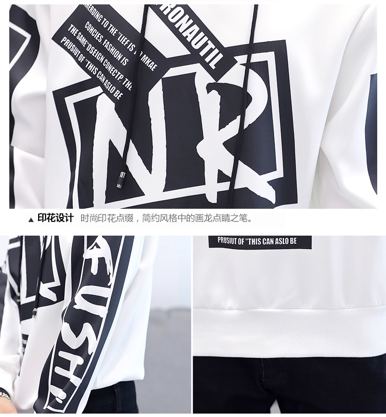 沙伯略秋冬加绒卫衣男连帽潮流青少年学生嘻哈大字母印花白色上衣