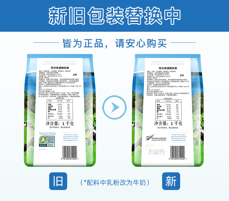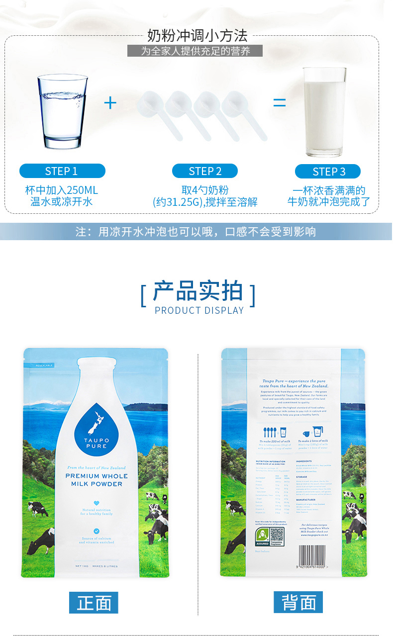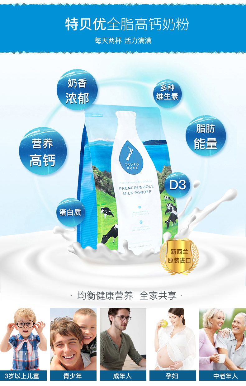 新西兰进口学生成人高钙全脂牛奶粉成年冲饮营养早餐奶中老年男女