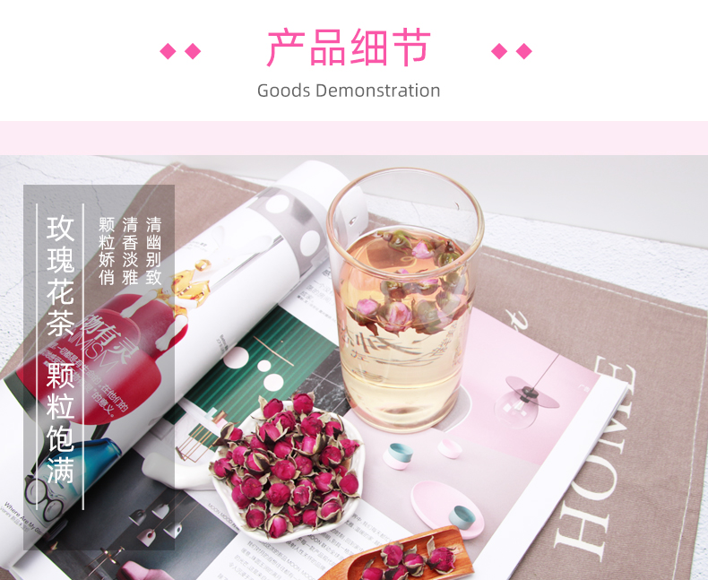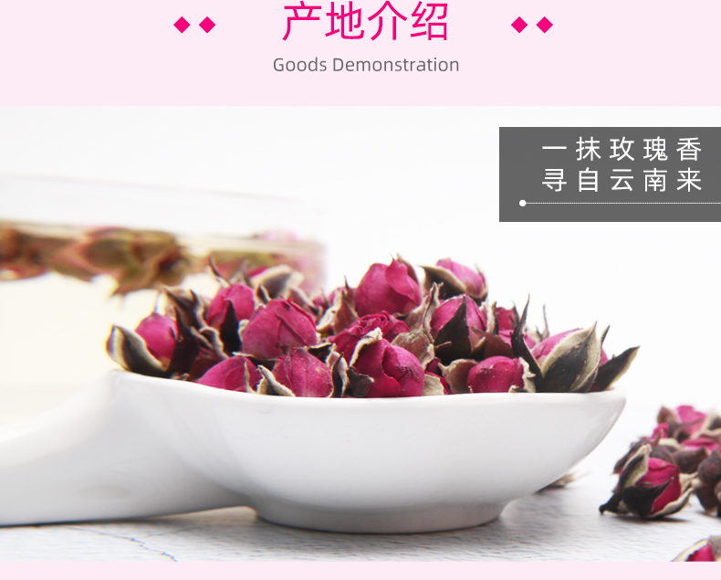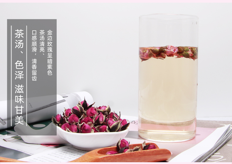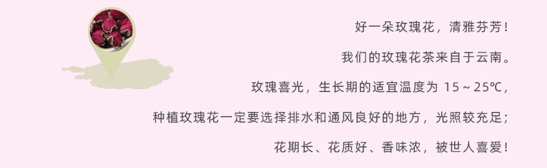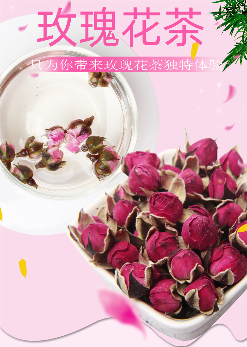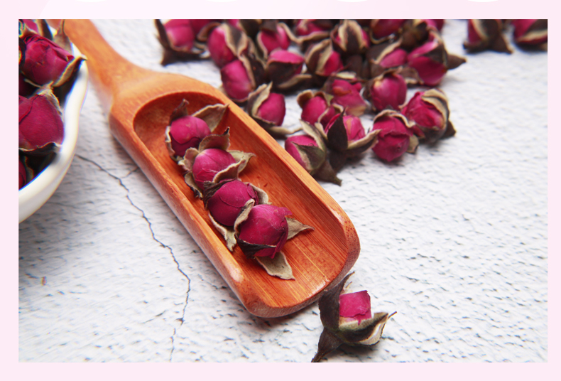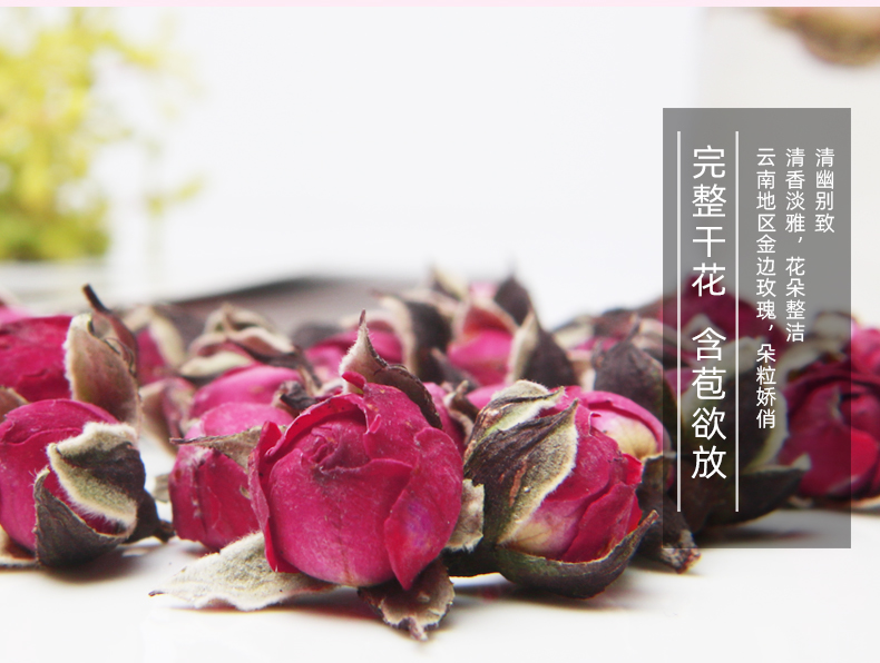 【买3送1买5送2】50g仅需7.9元;精挑细选,朵朵含苞欲放玫瑰花蕾,新鲜未绽放的胎玫瑰,汤色娇淡,清香扑鼻,让你不施粉黛,也能面若桃花。搭配枸杞,胎菊,山楂别有一番风味!