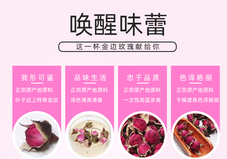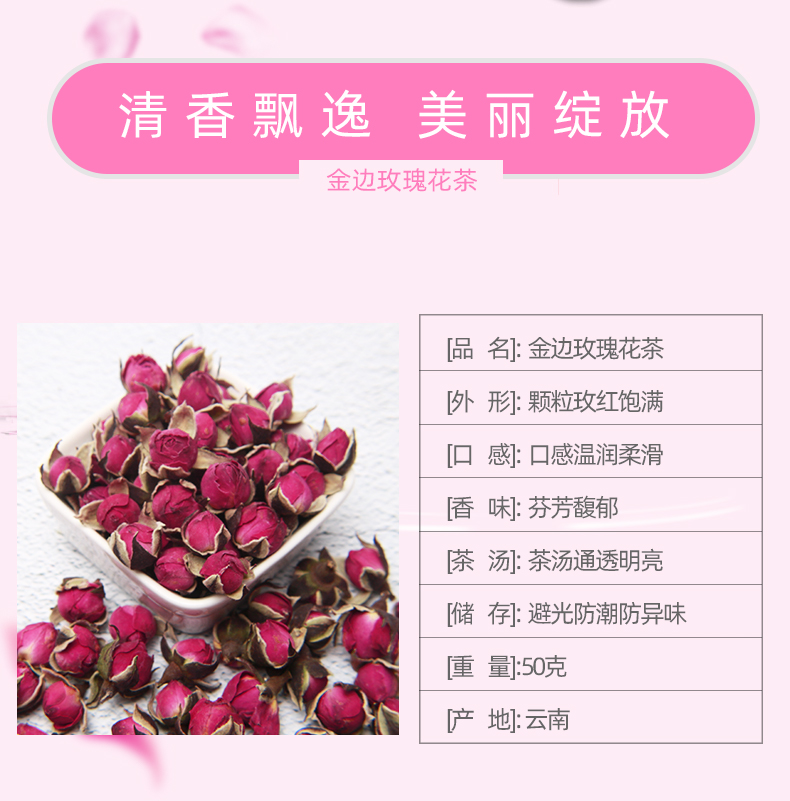 云南金边玫瑰花茶十二街干玫瑰花无硫新鲜干净玫瑰花蕾包邮