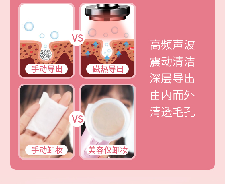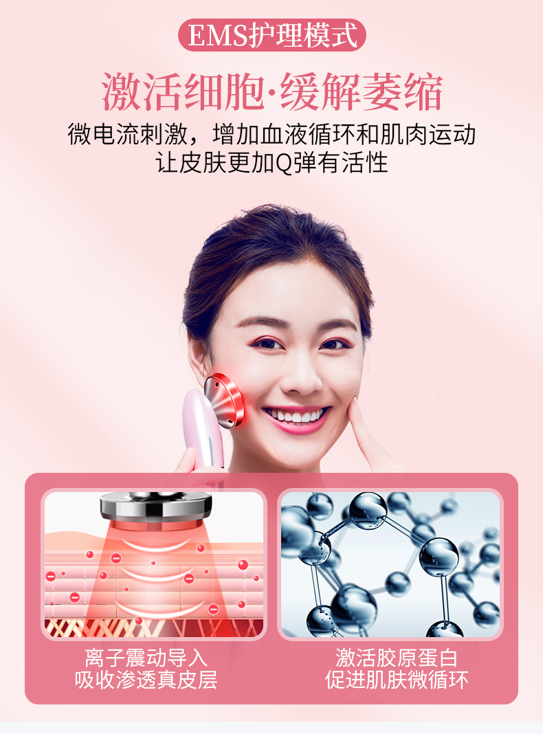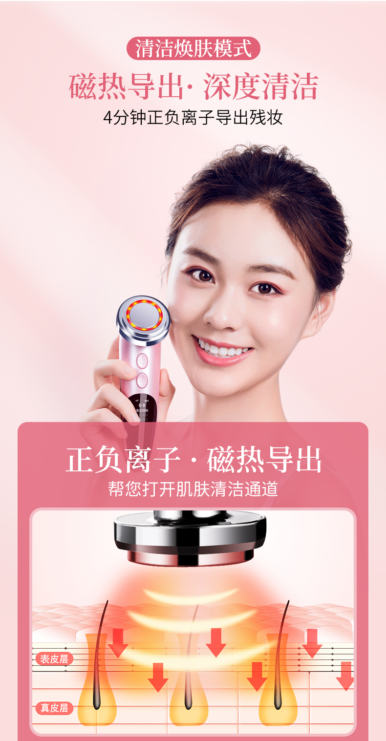 【月销4W的见证】离子清洁肌肤,养成素颜美肌。4分钟高效清洁导出面部垃圾,4种模式。微电流直达肌底,光学嫩肤紧致提拉。眼部护理还您明媚双眸。搭配面膜效果更佳!
