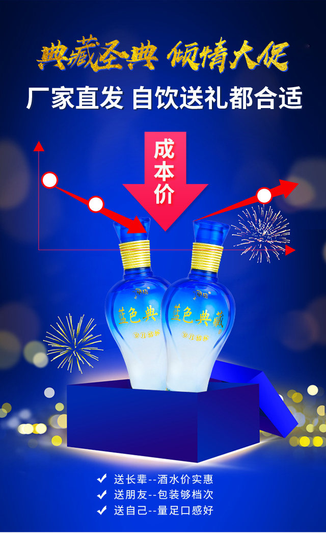 【高档礼盒6瓶装,原浆酒】蓝色典藏白酒,为您而生的品味艺术。厂家直销!口感浓香绵柔!纯粮食酿造,口感纯正!42度舒适口感,更懂你!!