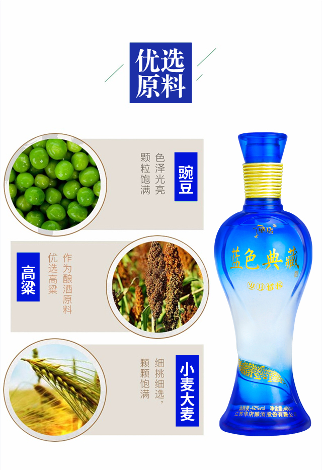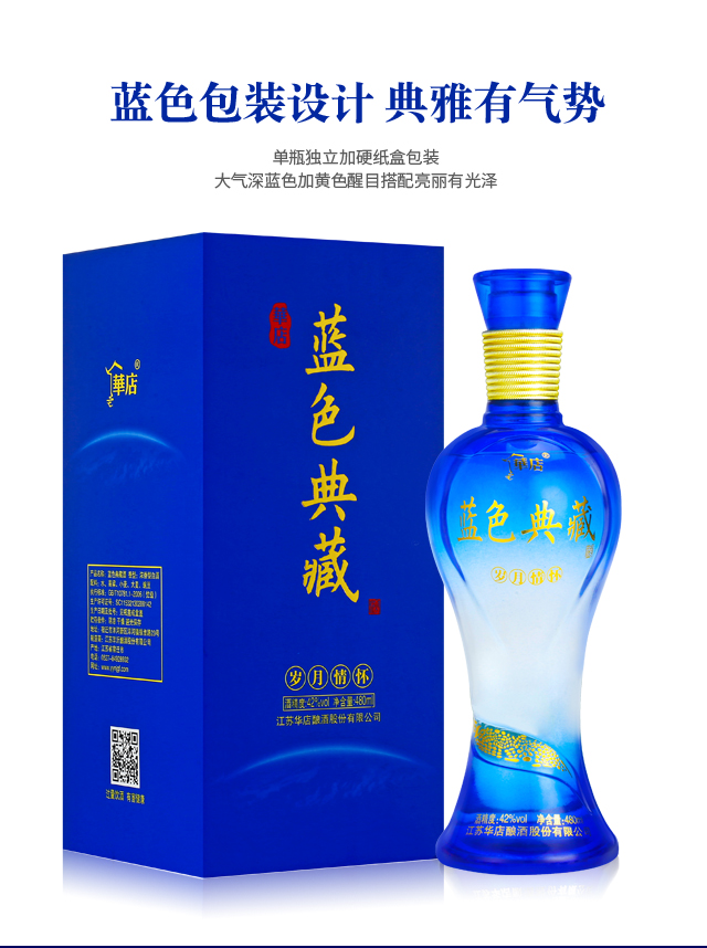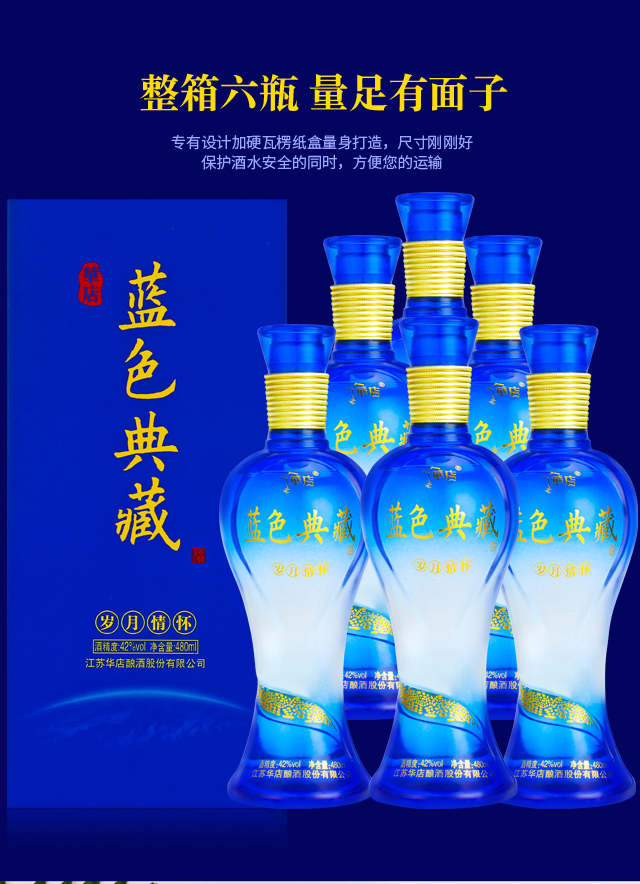 蓝色典藏白酒 42度480毫升6瓶特价粮食老酒送礼品装原浆酒浓香型