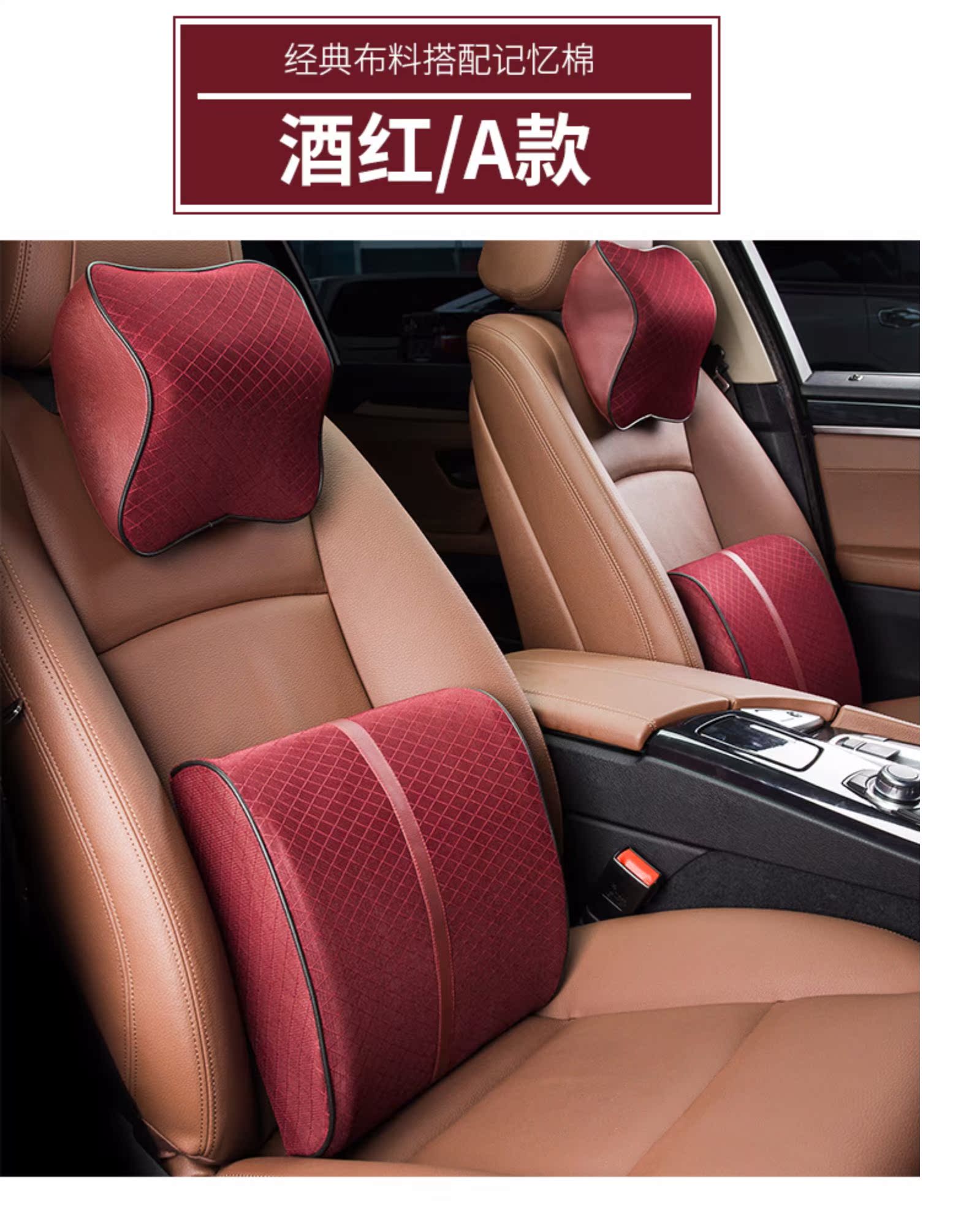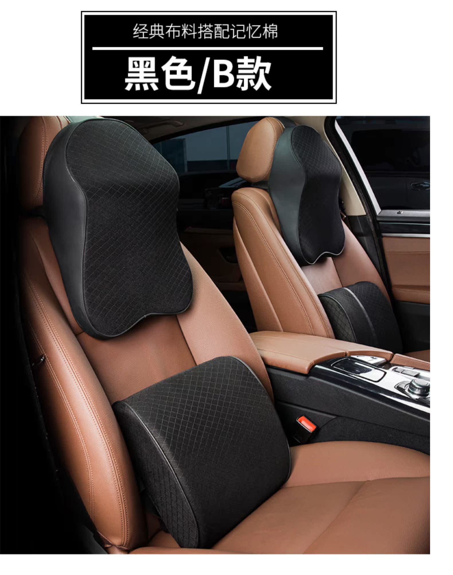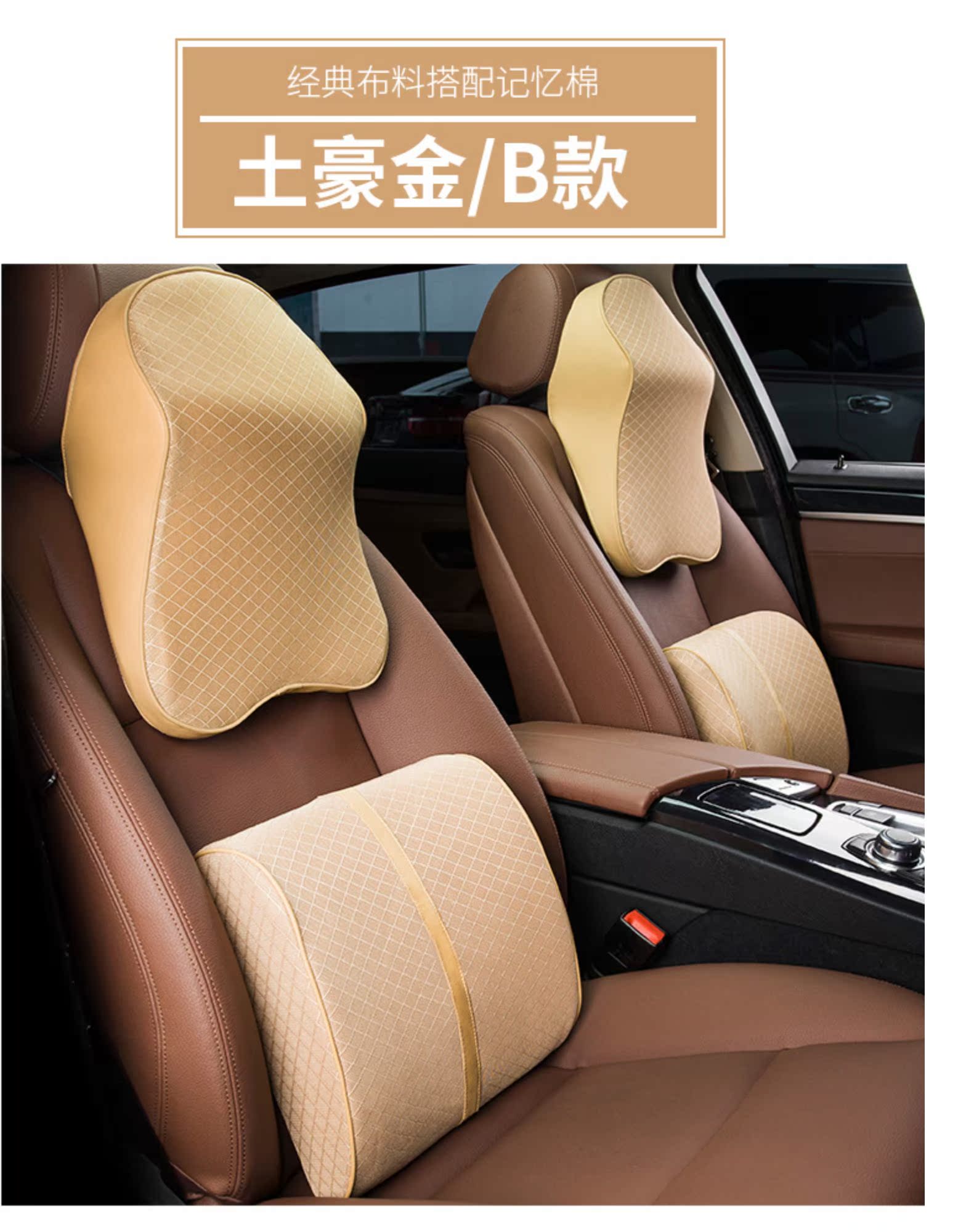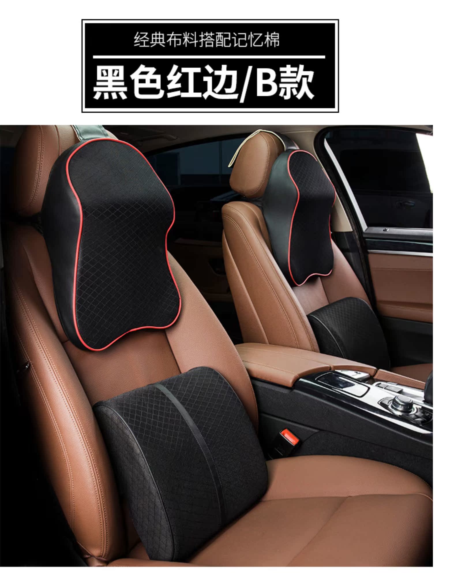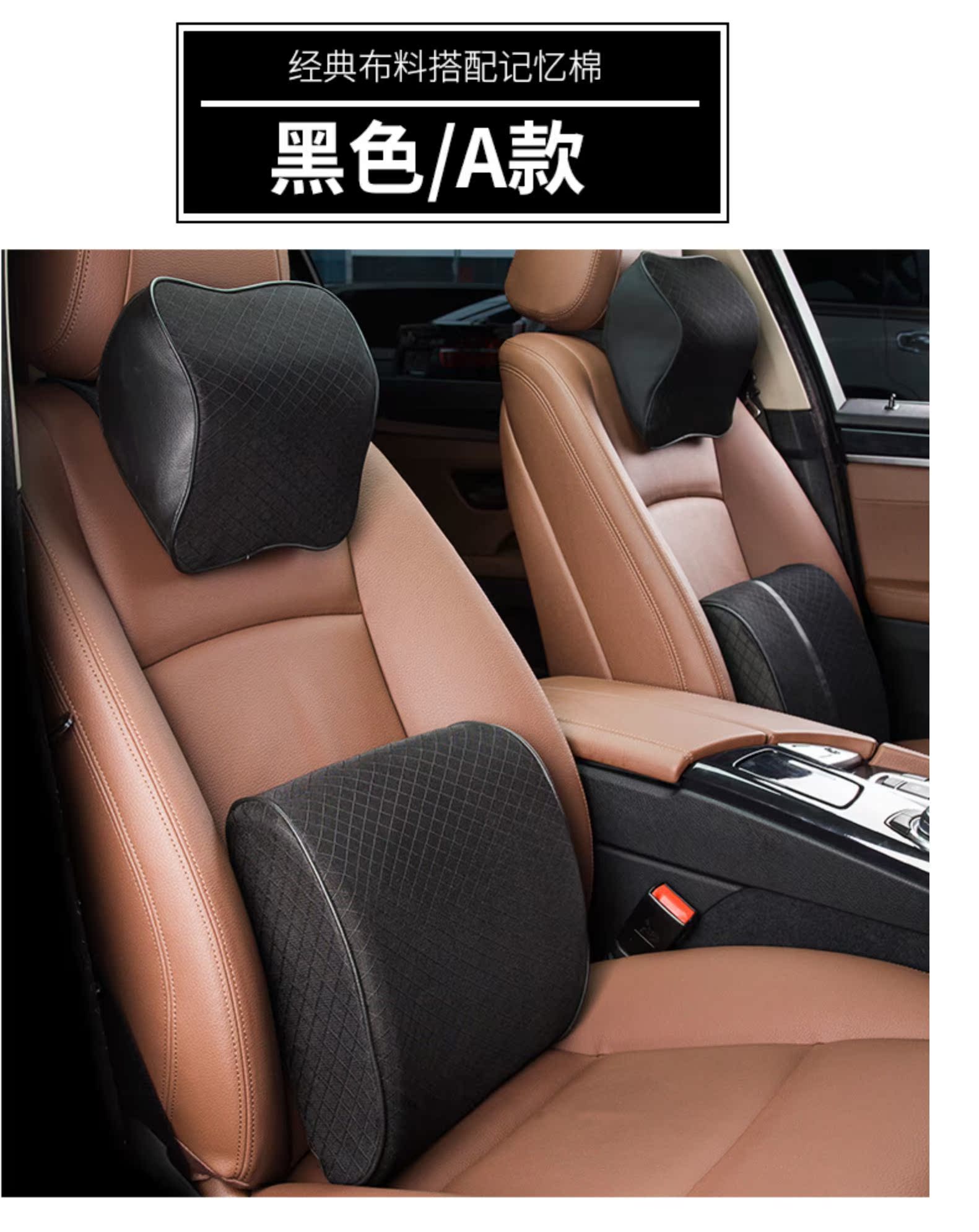 汽车腰靠护腰靠背垫四季记忆棉座椅车载用品车用靠枕车内头枕套装