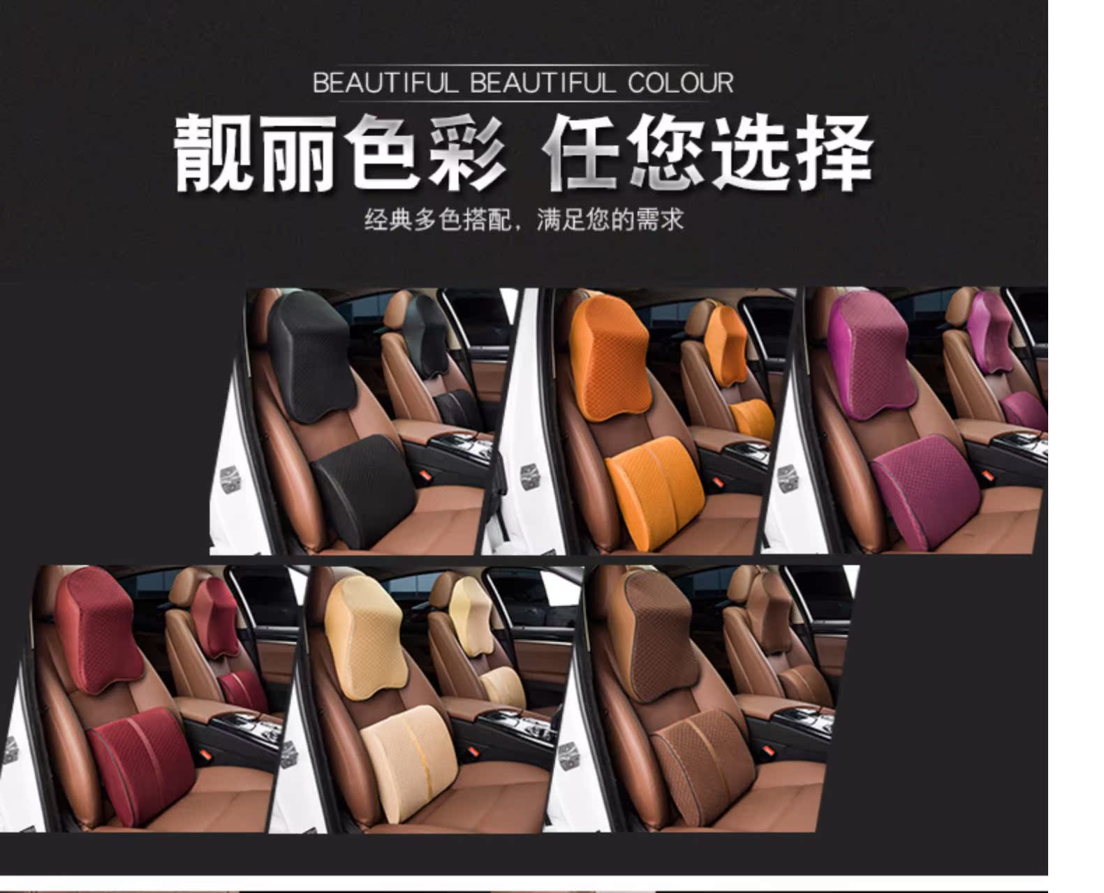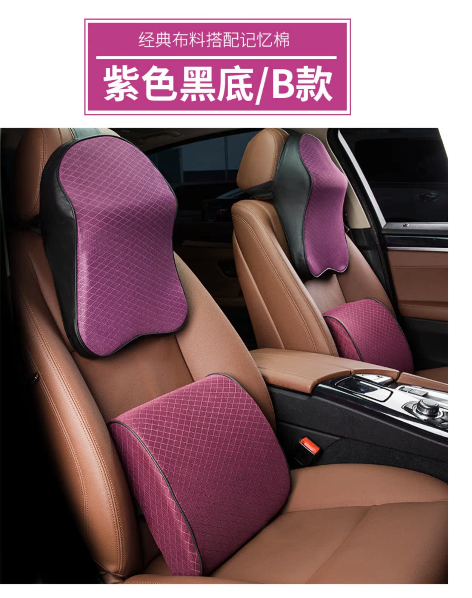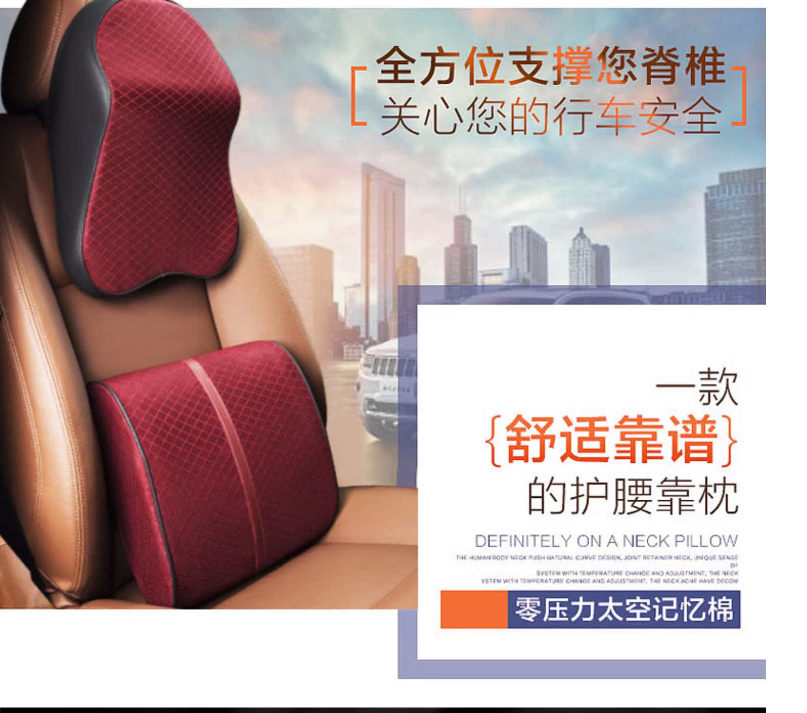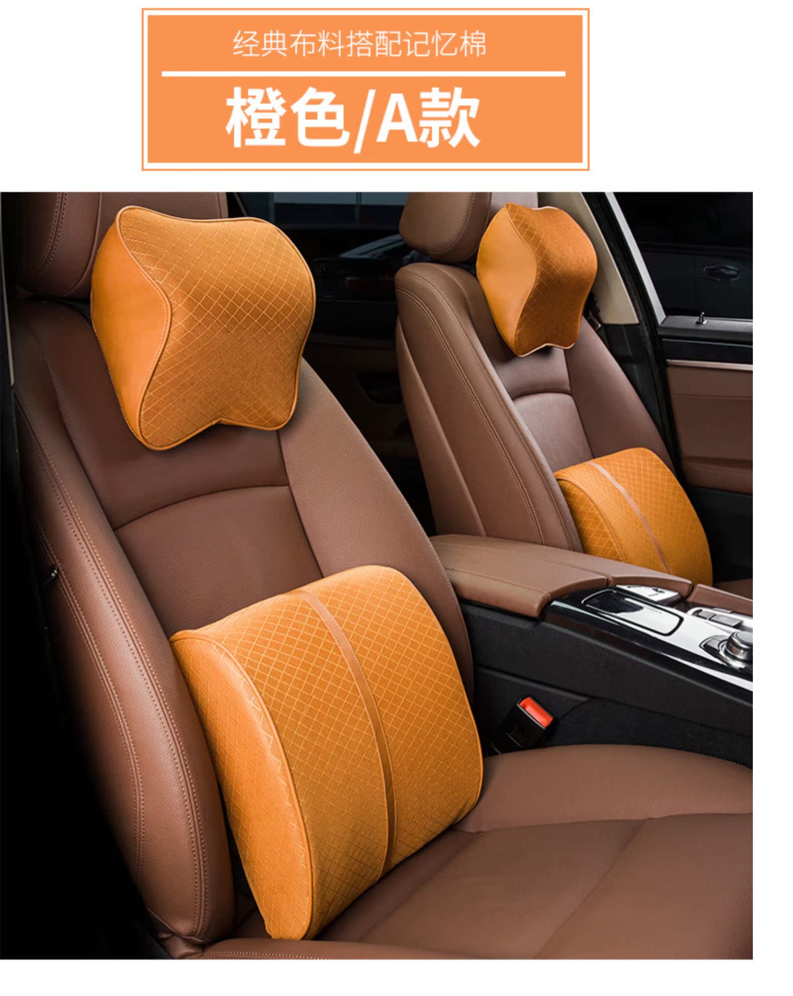 汽车腰靠护腰靠背垫四季记忆棉座椅车载用品车用靠枕车内头枕套装