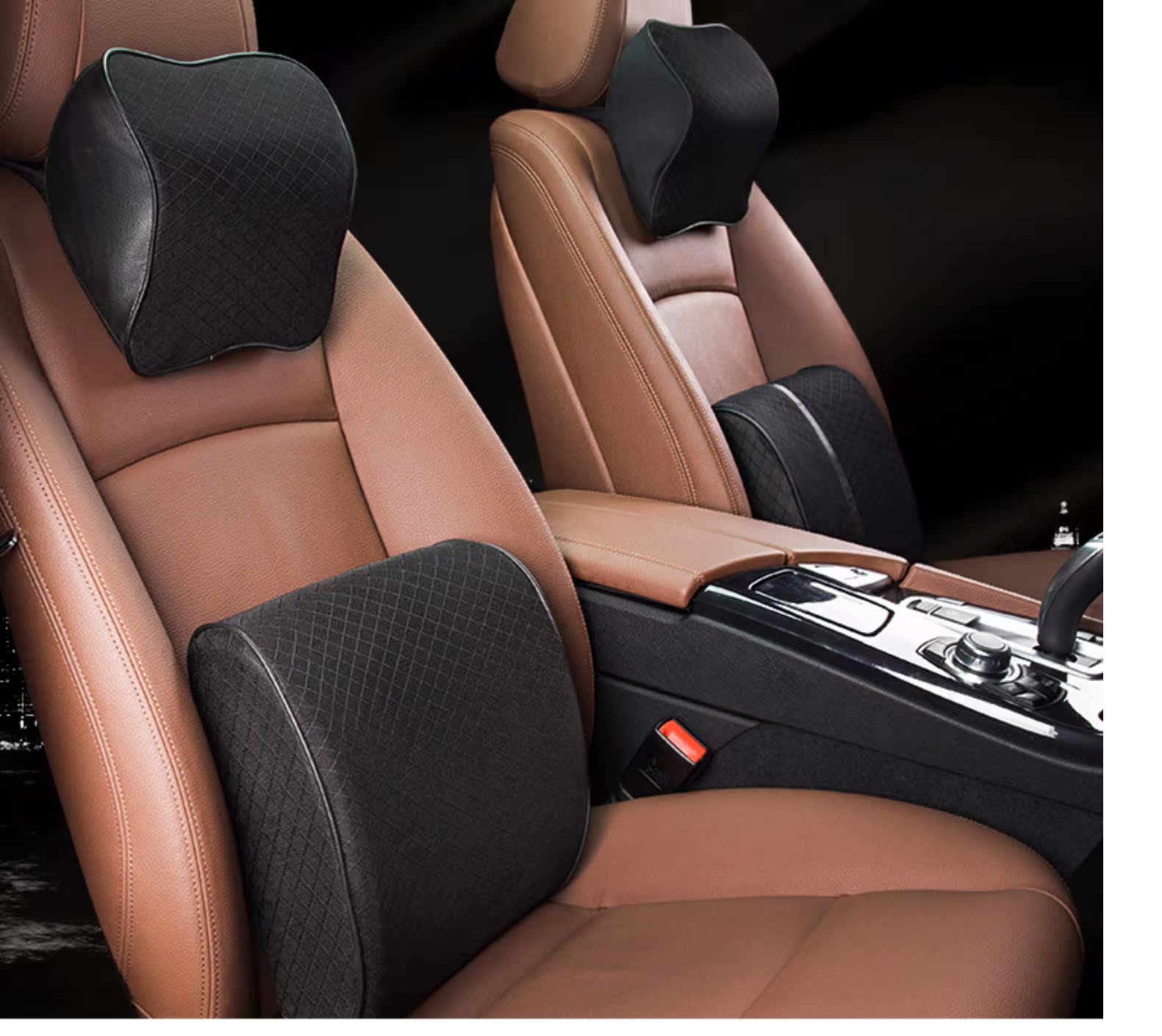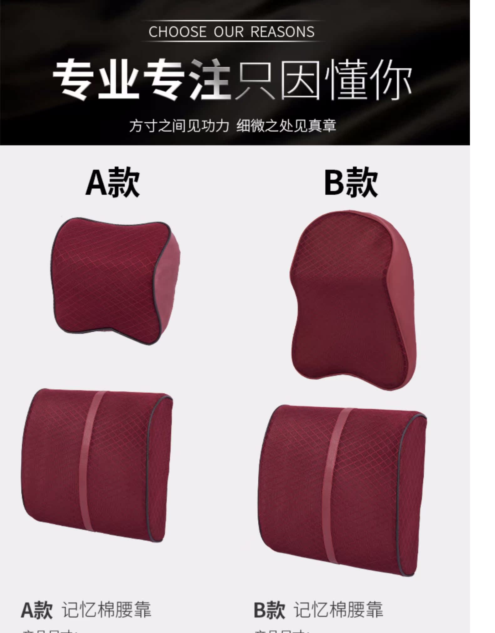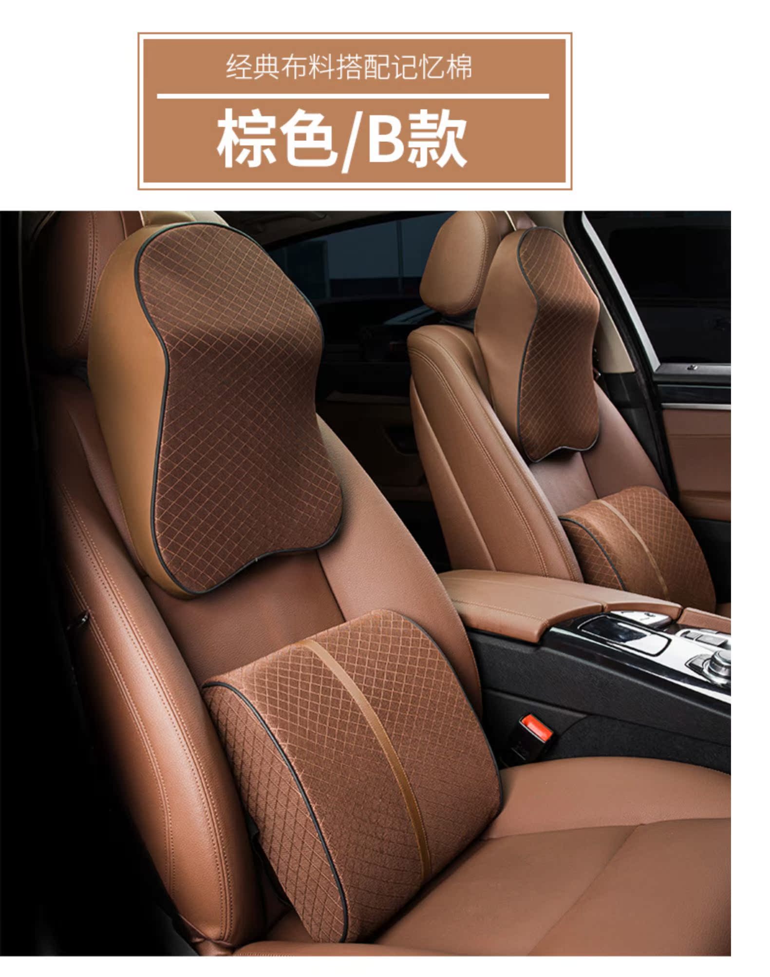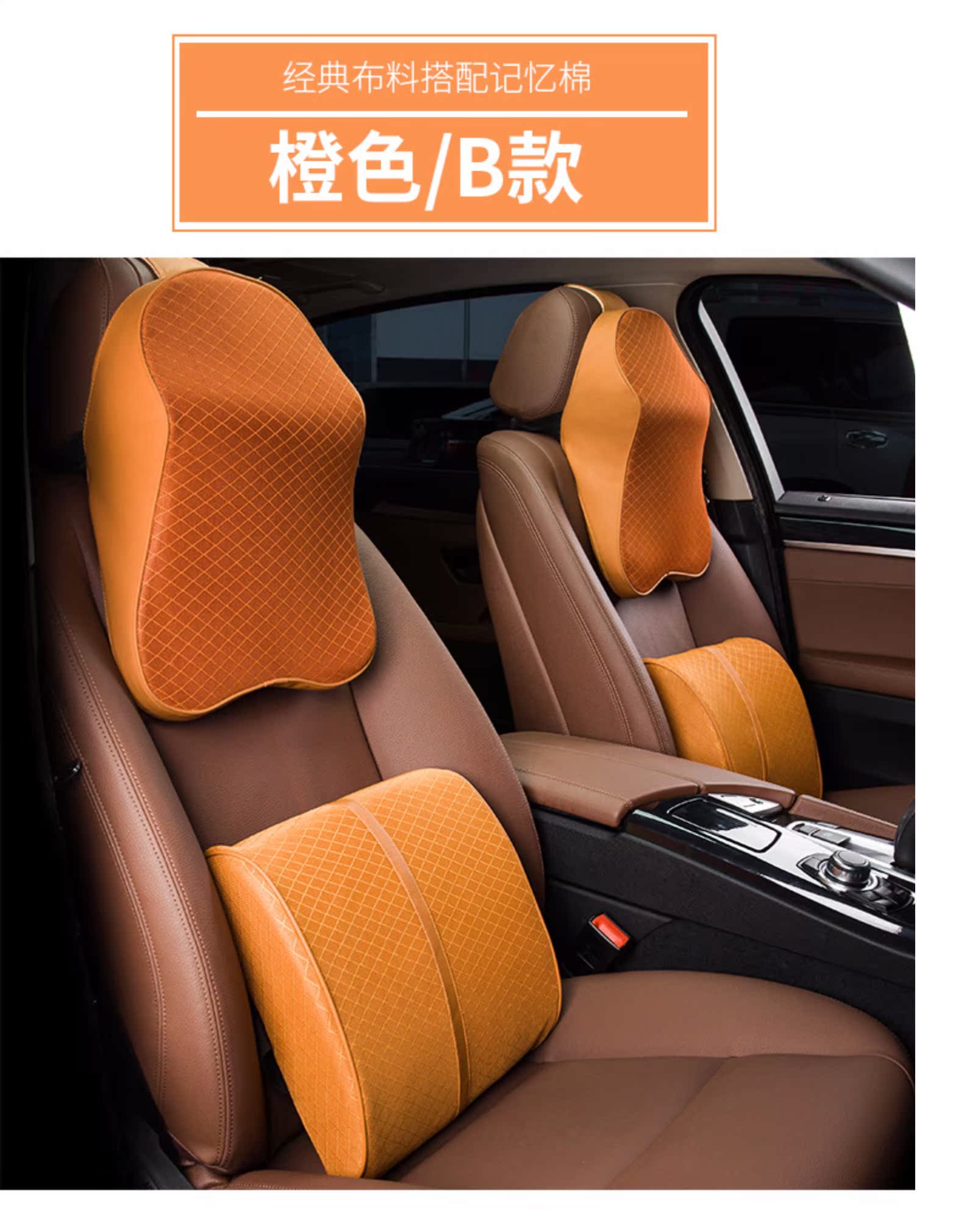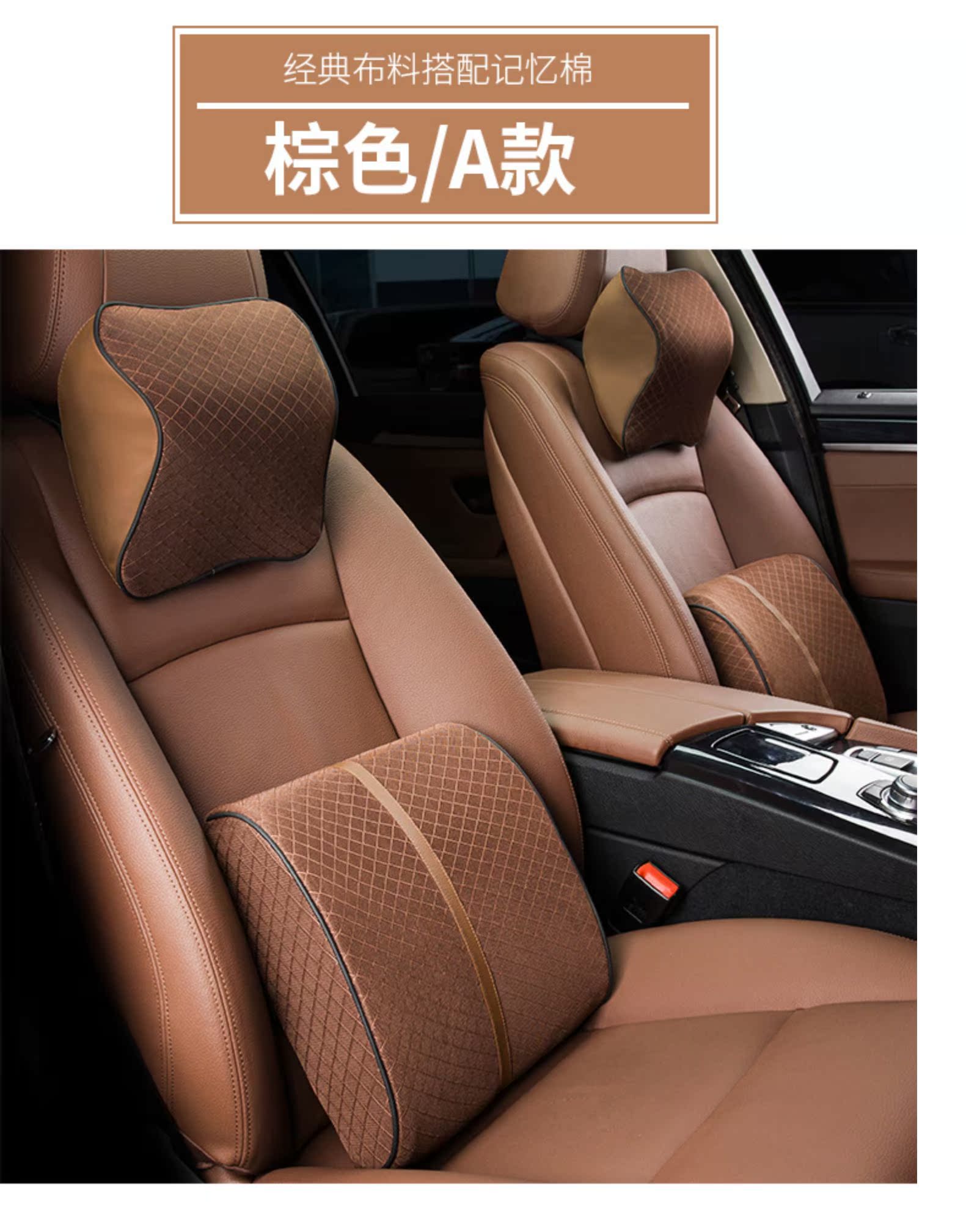 汽车腰靠护腰靠背垫四季记忆棉座椅车载用品车用靠枕车内头枕套装