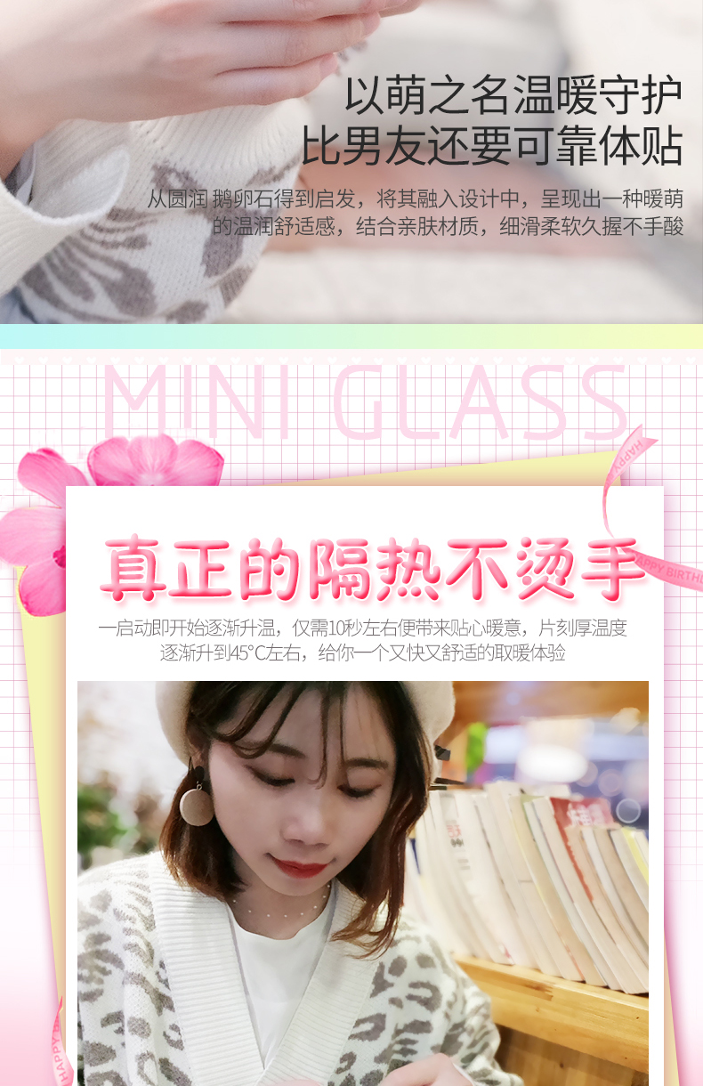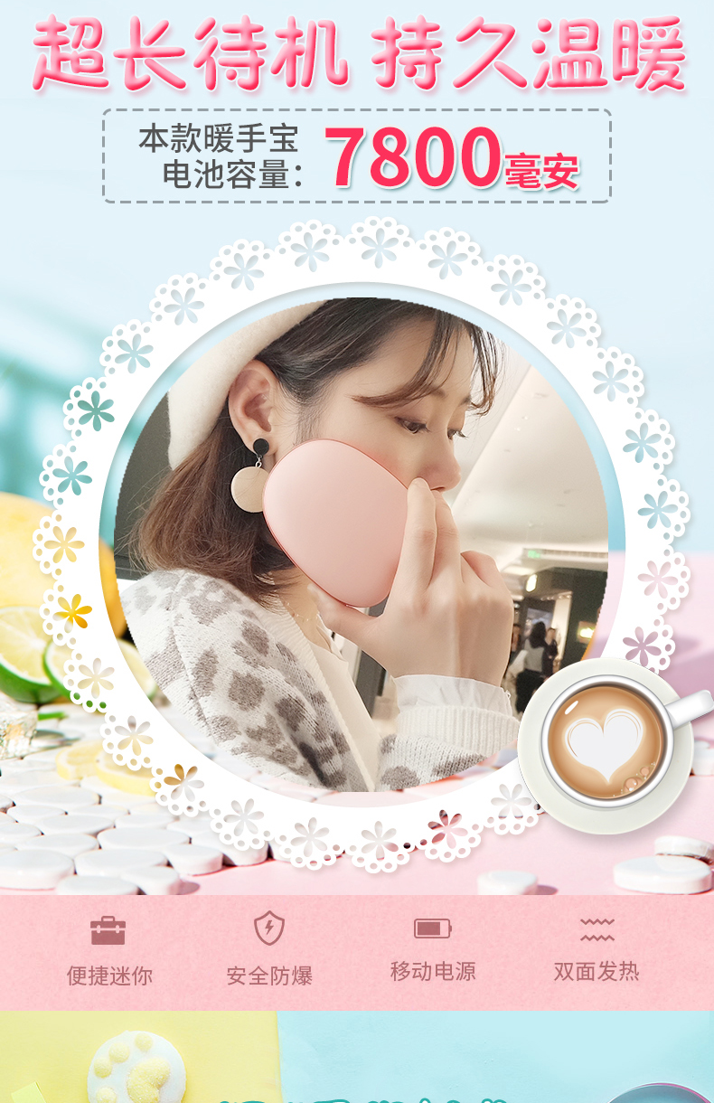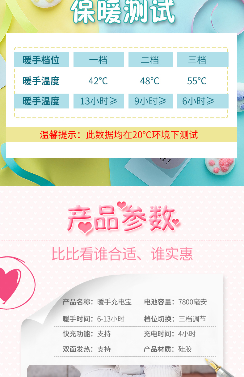 7800毫安的暖手宝、满电可暖手长达13小时。我是暖手宝也是充电宝,适合:儿童、学生、送朋友、送父母。玲珑小巧方便携带,超长待机持久温暖。