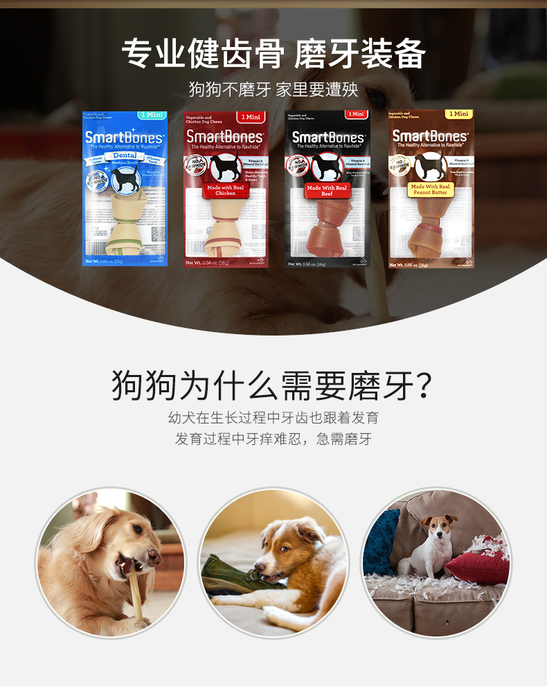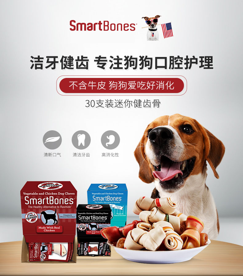 【smartbones官方旗舰店】正品保证,美国品牌,专业健齿骨,磨牙装备,富含维生素和矿物质,可以有效的清洁牙齿以及保护牙齿健康