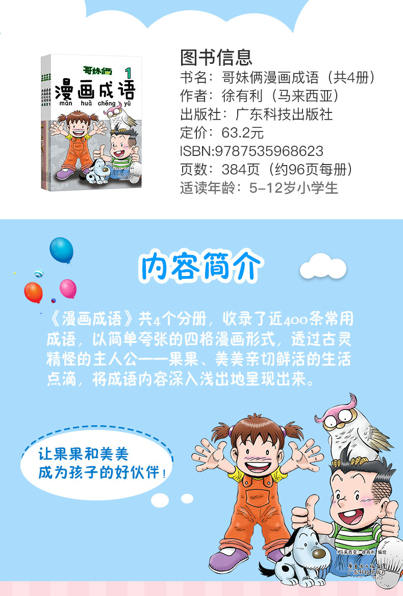 哥妹俩漫画成语故事书全四册 成语学习拼音拼读爆笑故事漫画书 小学生课外阅读书籍 绘本故事书 一二三四五六年级课外书必读徐有利
