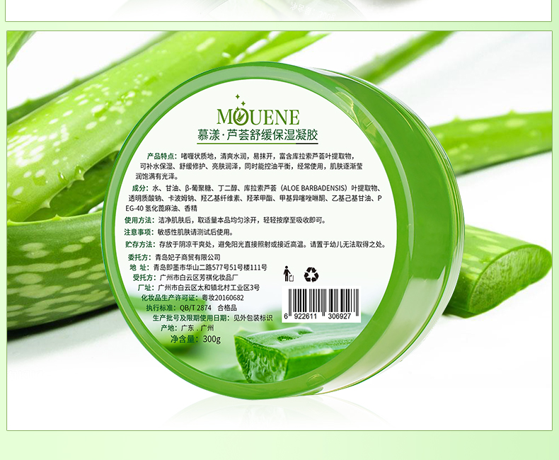 慕漾芦荟胶痘印青春痘修护补水保湿夏季晒后滋润修护提亮肤色300g