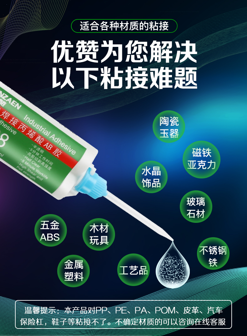 ab胶水强力胶耐高温快干防水粘铁金属代替焊接塑料石头大理石不锈钢暖气片瓷砖木头粘得牢丙烯酸高强度万能胶