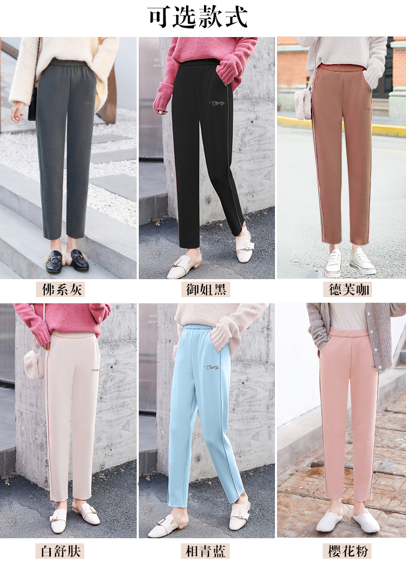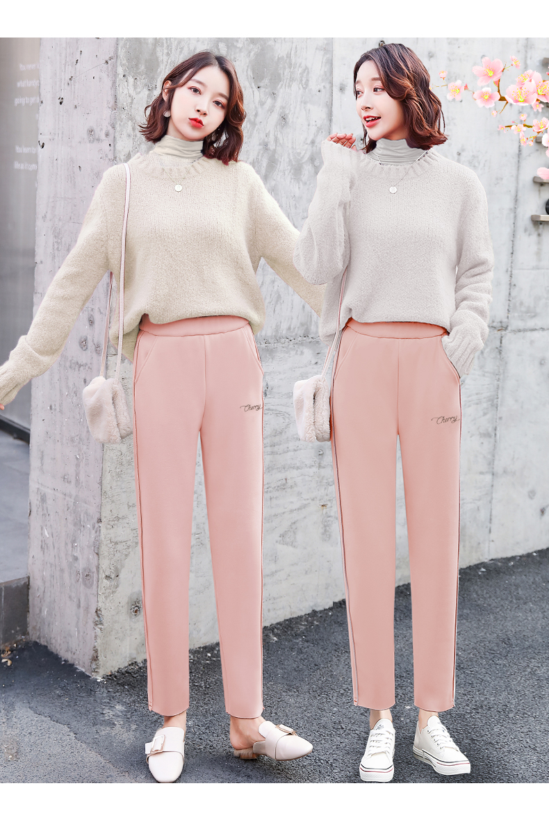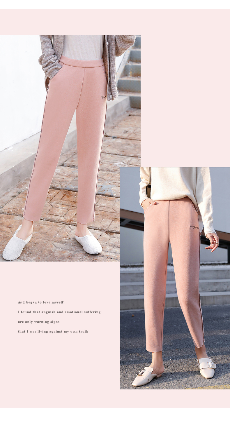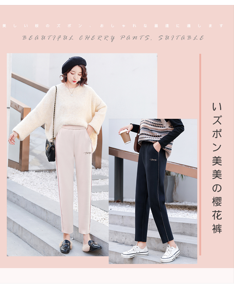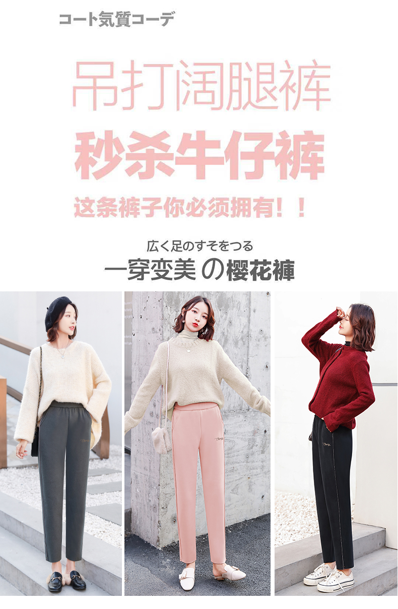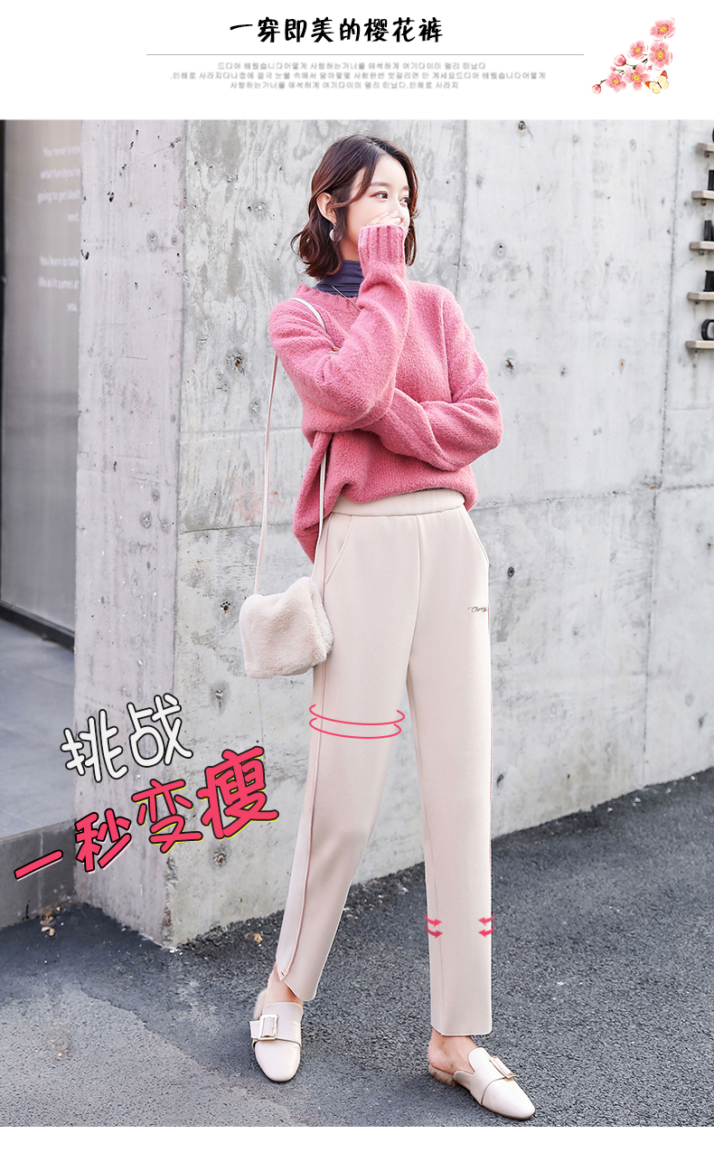 樱花奶奶裤女日系2019新款秋冬加绒加厚保暖润肤毛呢哈伦萝卜裤